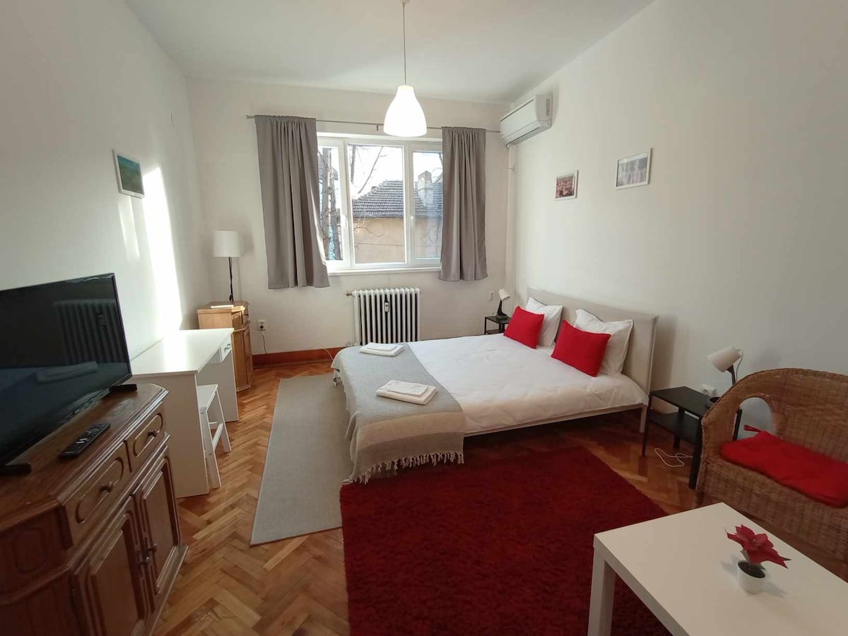 Sofía es una ciudad con cálidas aguas termales que datan de la época del Imperio romano. Este apartamento está ubicado en la parte superior de las antiguas ruinas de la ciudad romana, justo en el centro de la parte superior moderna actual. Mi apartamento está a poca distancia a pie de la calle comercial principal y de todos los lugares de interés centrales, así como de bonitos centros de spa y modernos centros comerciales. Es un lugar que recuerda estos viejos tiempos por el diseño de interiores, pero también un lugar lleno de electrodomésticos modernos de alta tecnología que te darán comodidad.