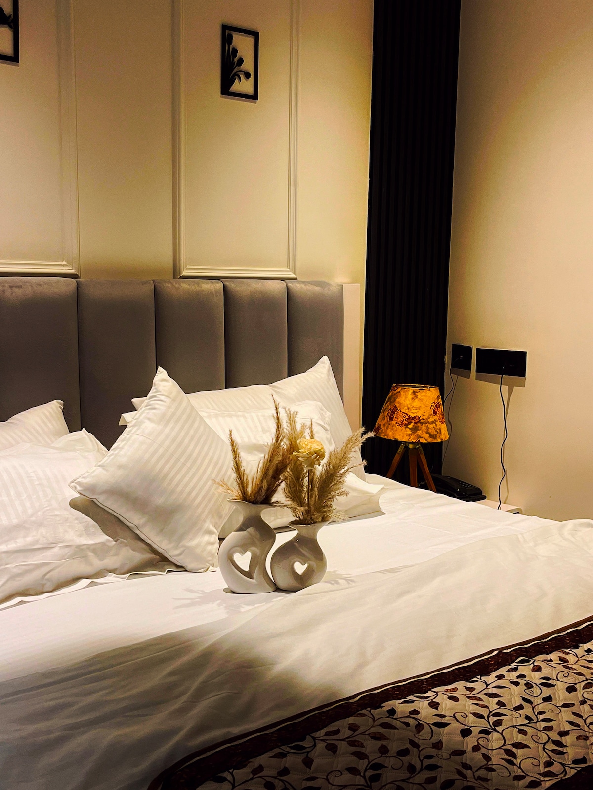The perfect spot for casual drinks, conversations, or a cozy evening snack. The bedroom transforms into your personal escape, complete with a projector setup that turns quiet nights into immersive movie experiences from the comfort of your bed. Soft lighting, warm textures, and carefully curated details create an easy, laid-back ambiance throughout—ideal for couples, solo travelers, or anyone looking to recharge in style.