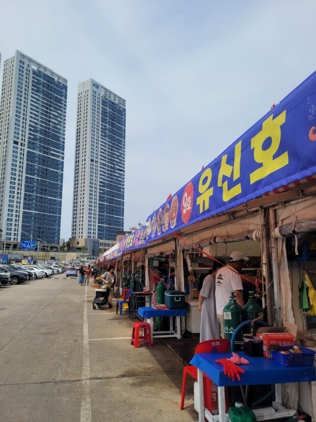 (Un día_Sokcho) # Terraza con vista al mar # Sokcho Jaieladerkara Mercado de # Jungang # Dongmyeong Port # Squid Nangjeon