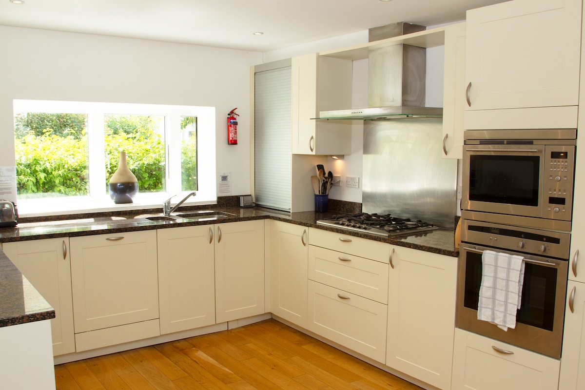 ¡Goosewing te da la bienvenida! Casa frente al lago con capacidad para 8 personas (+ 2 cunas de viaje) en 4 dormitorios más SALA DE JUEGOS en el entresuelo. SE ADMITEN PERROS y se encuentra dentro de una reserva natural privada de 500 acres. Lower Mill Estate ofrece instalaciones deportivas, lagos, senderos para caminar y andar en bicicleta, parque infantil, juegos suaves, acceso GRATUITO a piscinas y spa de lujo. Restaurante Ballihoo en el lugar. La divertida zona de reunión en el entresuelo permite que los niños/adolescentes se entretengan mientras los adultos se relajan.