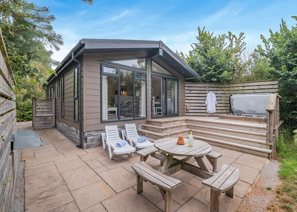 Un chalet encantador, ligero y espacioso en los niveles de Somerset; terminado a un alto nivel con su propia bañera de hidromasaje privada de leña en la terraza con vistas a los campos. Calefacción de gas y un quemador de leña. (ver las reglas de la casa para el uso del quemador de madera) NO SE PROPORCIONAN TOALLAS Los horarios de entrada y salida a veces pueden modificarse según sus necesidades . Pregunte al reservar . La ubicación es una milla de distancia de un pub y 1,5 de un supermercado local. Está por una pista y muy aislado . No esperes en los suburbios. No se proporcionan TOALLAS.