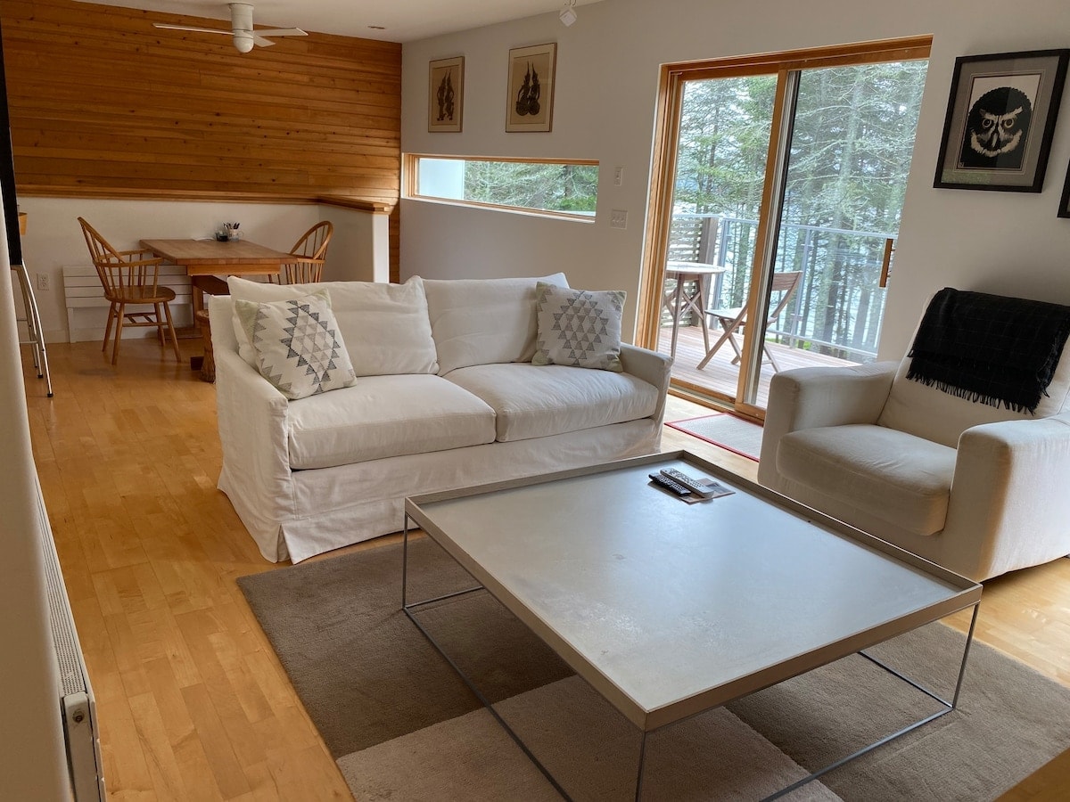 Este condominio del tercer piso recientemente renovado se completó en 2022. ¡Disfruta de una terraza privada y de tus vistas al puerto y al Océano Atlántico! ¡El diseño de concepto abierto de la sala de estar principal de la casa es ideal para que los grupos disfruten juntos! **En 2023 cambiamos de unidades de aire acondicionado de ventana a unidades portátiles de aire acondicionado para reducir el ruido de la carretera en los dormitorios** Lo más destacable: -4min en auto hasta Bass Harbor - A 18 minutos en coche del Parque Nacional Acadia [Hulls Cove Entrance] - A 20 minutos en auto del centro de Bar Harbor.