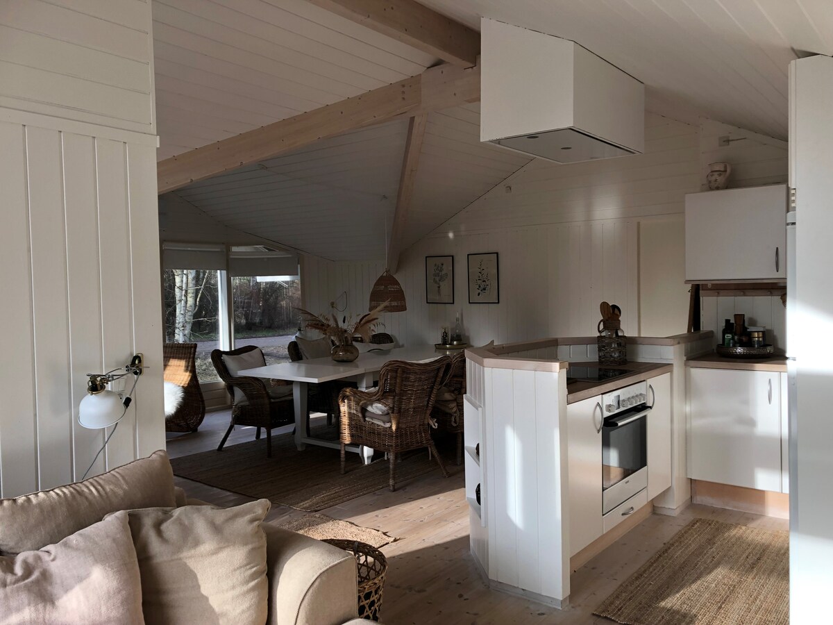 Encantadora casa pequeña y de diseño con terraza en la azotea y cubierta de madera. - A 1 hora en coche de Copenhague. Supermercado a 1000 m, playa a 500 m, bosque a 700 m. Escondite romántico para 2 o para una familia pequeña. El mar, el bosque, el campo, vistas al mar, patio privado (se admiten perros). Ten en cuenta: El alquiler mínimo es de 7 noches. En temporada alta, de junio a octubre, la casa se alquila principalmente de sábado a sábado, por 7, 14 o 21 noches.