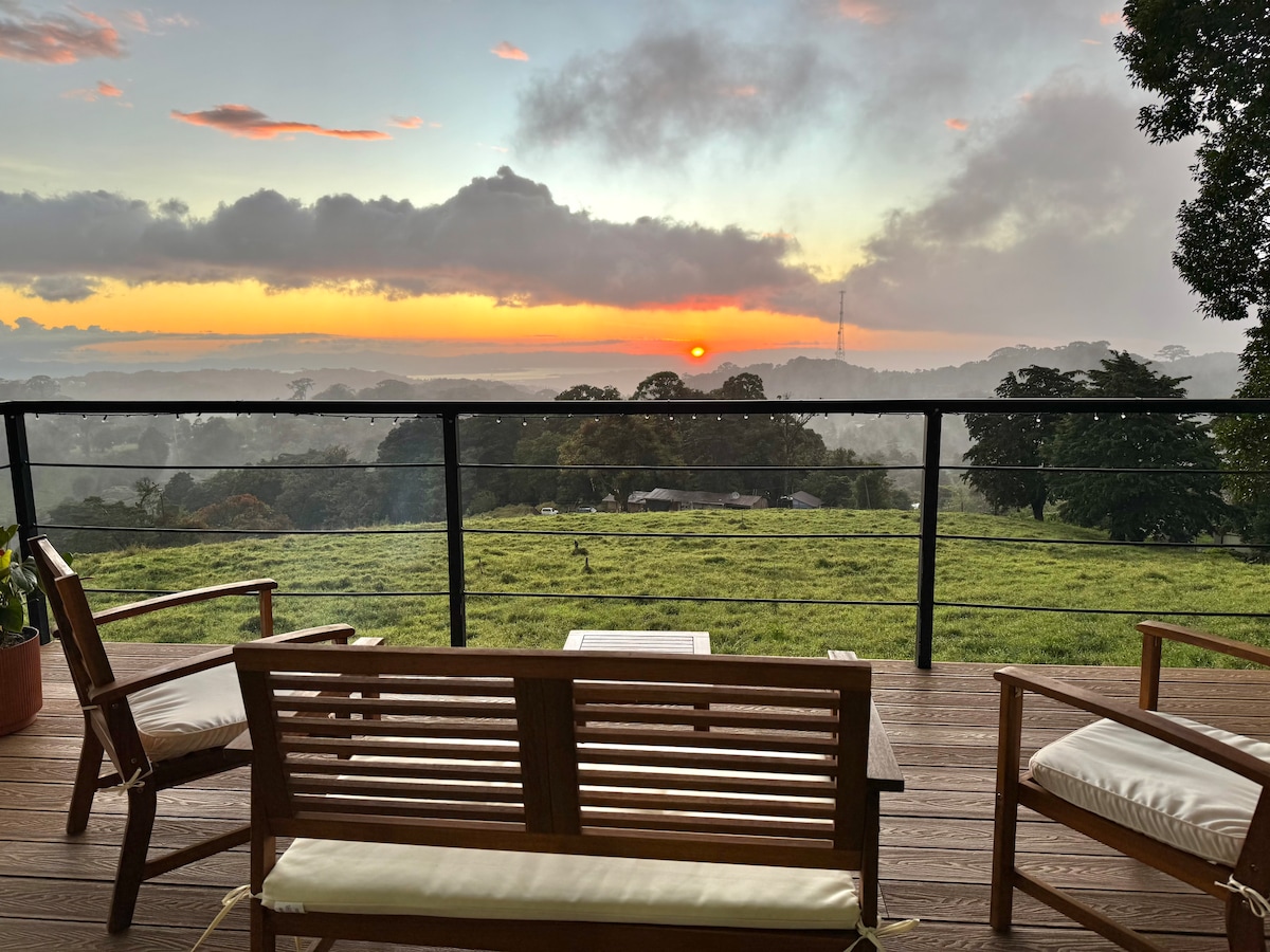 Advertencia: podrías no querer irte. Enclavada en una propiedad privada de más de 4 hectáreas, esta exclusiva cabaña de bambú ofrece total privacidad y un entorno natural extraordinario. Desde aquí podrás disfrutar vistas panorámicas que abarcan montañas, valles, llanuras, nubes y el Golfo de Nicoya. Los amaneceres y atardeceres transforman el paisaje en un espectáculo de luz y color que realmente justifica el nombre de “vista de un millón de dólares”.