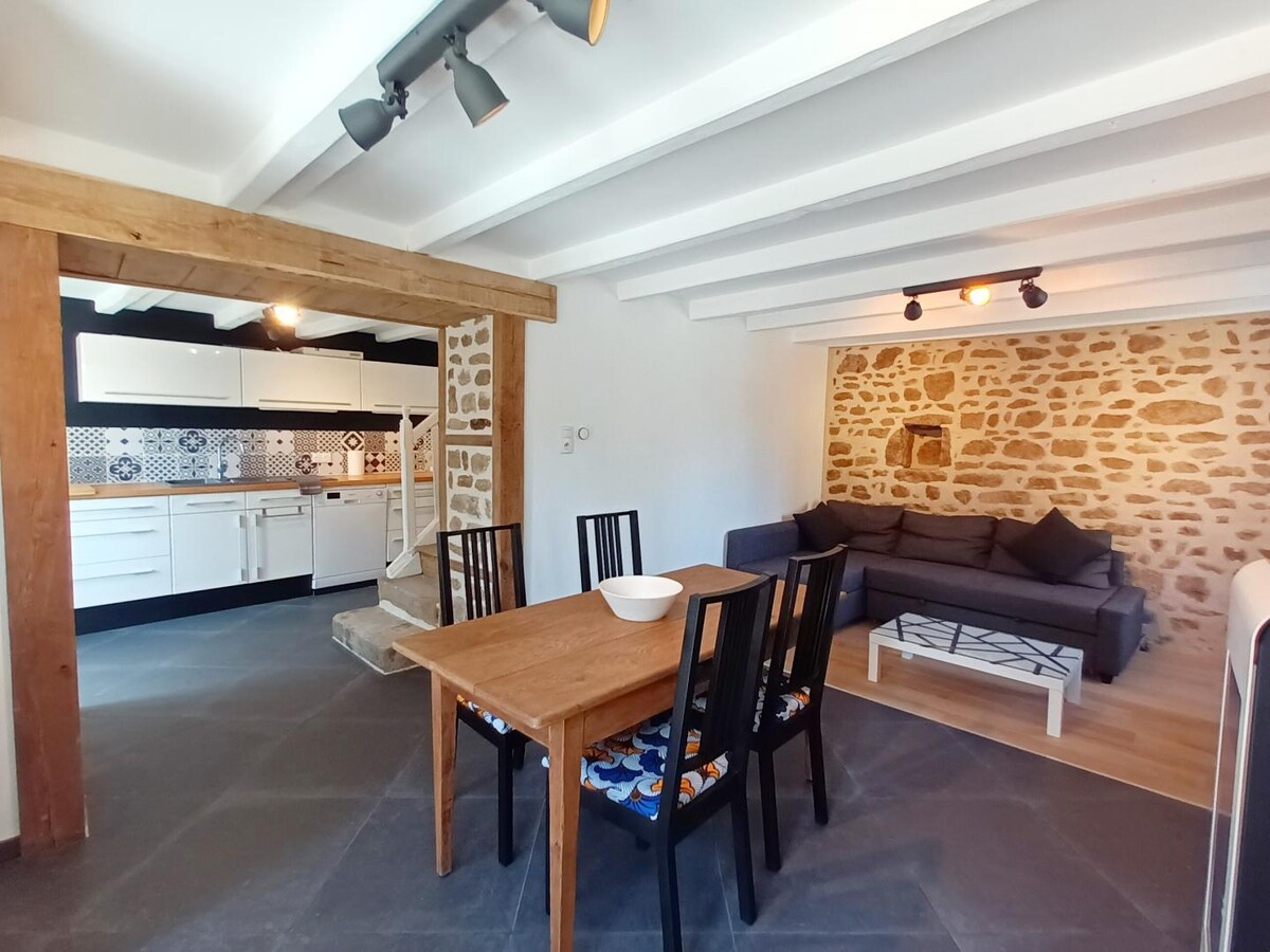 Bienvenido a nuestro apartamento cálido y cómodo, situado en un edificio de piedra de principios de 1900. A solo 5 minutos andando del centro de la ciudad, este alojamiento adosado combina el encanto de lo antiguo y la comodidad moderna. ¿Te apetece naturaleza? Está a solo 2 minutos a pie del estanque de Courtille, perfecto para un paseo o un momento de relajación. Los amantes de la bicicleta de montaña y el senderismo apreciarán la proximidad del sitio de Maupuy. La escuela secundaria también se encuentra a un minuto andando.