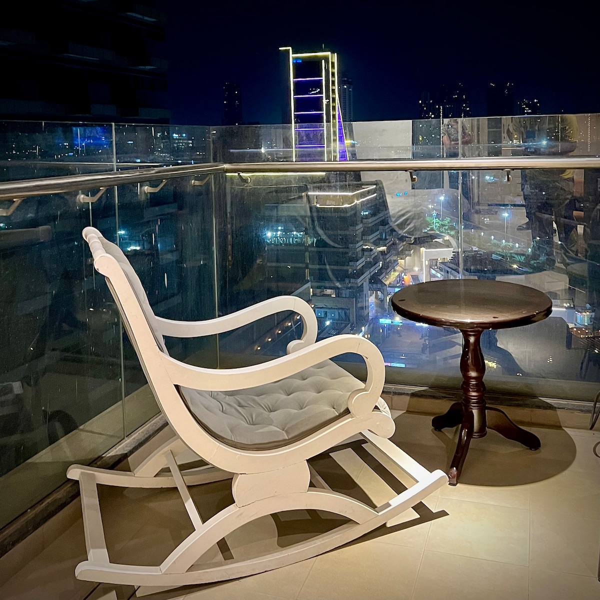 Our 1 BHK Orbit Penthouse in DHA Phase 5 is where urban chic meets celestial cool. Think: a glowing moon wall for those late-night selfies and a bold dollar-stacked art piece that screams "main character energy" Wake up to park views from your private balcony swing, binge your faves on the 50" 4K Smart TV, or cook up something aesthetic in the fully loaded designer kitchen. The interiors? Abstract, stylish, and made for the feed. Plus, you're right next to Lahore's hottest dining spots.