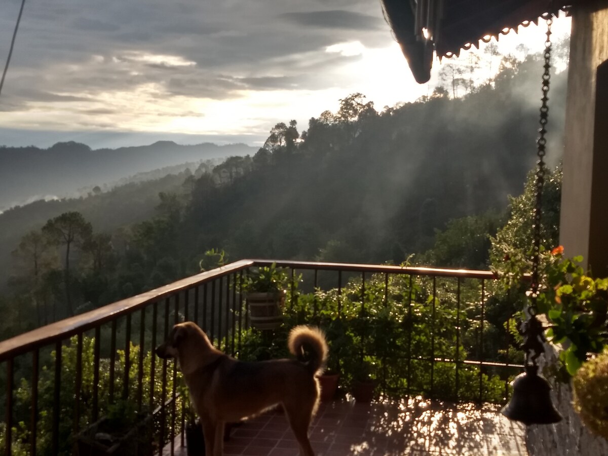 Escapa del caos de la ciudad. Respira aire puro y sin contaminación. El Himalaya te espera. Dos habitaciones con vistas, cada una con capacidad para dos personas. Ideal para largos paseos, simplemente relajarse o conducir 2,5 horas a Nainital, Jageswar o 0,5 horas a Mukteswar. El desayuno y una comida para los huéspedes de corta estancia se pueden proporcionar con previo aviso y son de pago. Los huéspedes de larga duración deben gestionar sus propias comidas. Internet/WiFi está disponible.