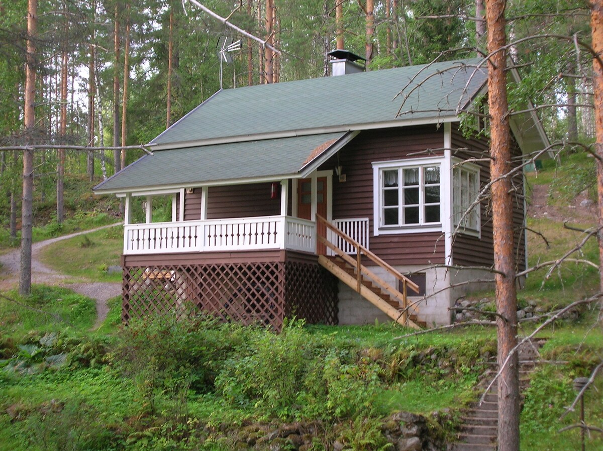 Hermosa casa de campo para 8 personas con 3 dormitorios (2 dobles, 4 camas individuales), 2 baños, sauna. Sala de estar: TV, chimenea, wifi. Cocina equipada. Patio: parrilla, muebles, vista al lago. Supermercado a 5 km, entrega de comestibles disponible. Barco compartido con los huéspedes. Uso opcional de saunas de humo por un cargo adicional. Cerca de Hilda Cottage (12 personas).