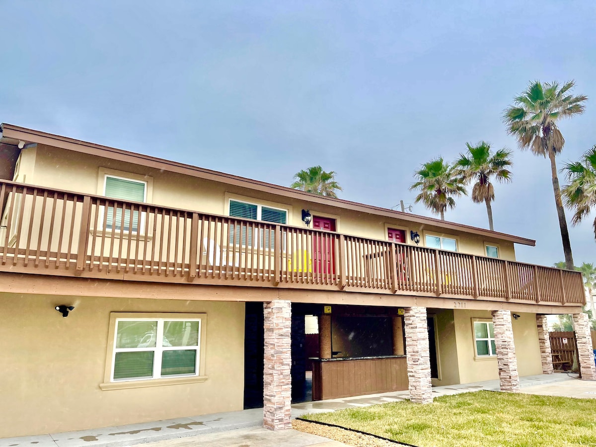 Caminata a Butterfly Beach con vistas incluidas 🌊 A menos de 200 pasos de la arena con vistas al mar desde el balcón del porche delantero, ¡sin precios frente a la playa! Recientemente renovado y completamente equipado, este acogedor refugio costero cuenta con dos camas dobles más literas empotradas en el pasillo con un divisor de privacidad, perfecto para familias o grupos pequeños. Los huéspedes también disfrutan de un espacio compartido al aire libre con parrilla y mesas de picnic. Deja el auto y camina hasta restaurantes populares, tiendas y vida nocturna.