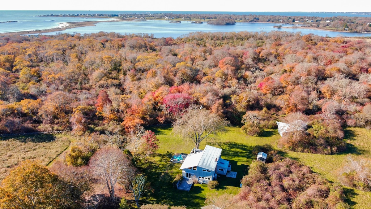 Brithaven Farm se encuentra en 28 acres de campos, prados, bosques y jardines. Estamos a solo 2 millas de East Beach y del Santuario de Vida Silvestre Allen's Pond. Estamos completamente aislados de la carretera y se llega por un largo camino a través de bosques que se abre a campos y prados. El alquiler tiene 2 terrazas, una con un gran toldo con mesa de comedor y sillas para descansar y disfrutar de las vistas. Hay una sala de estar de planta abierta, comedor cocina con puertas francesas que conducen a la terraza.
