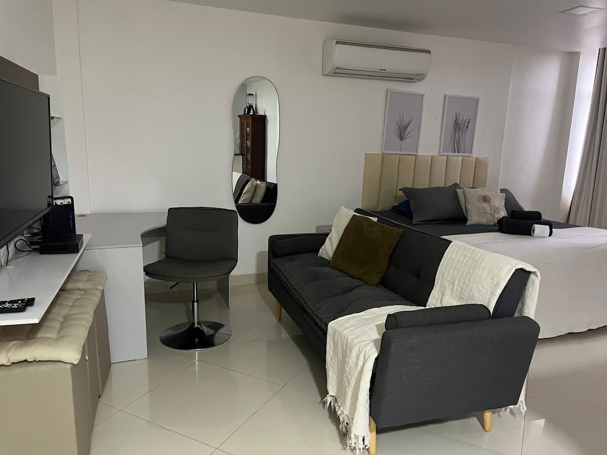 Apartamento, estilo loft, muy moderno y acogedor. Tiene habitaciones independientes con cama de matrimonio. Sofá cama en la sala, baño espacioso, aseo independiente. Todo bien planeado y decorado. La zona gourmet está integrada en la sala de estar (cocina americana), ideal para la interacción entre los huéspedes. Cocina con cocina eléctrica de 2 hornillas, minibar, microondas, horno eléctrico y cafetera, etc. Toallas y ropa de cama para los huéspedes. A menos de 10 minutos, hasta el metro o Aterro do Flamengo y otros puntos culturales.