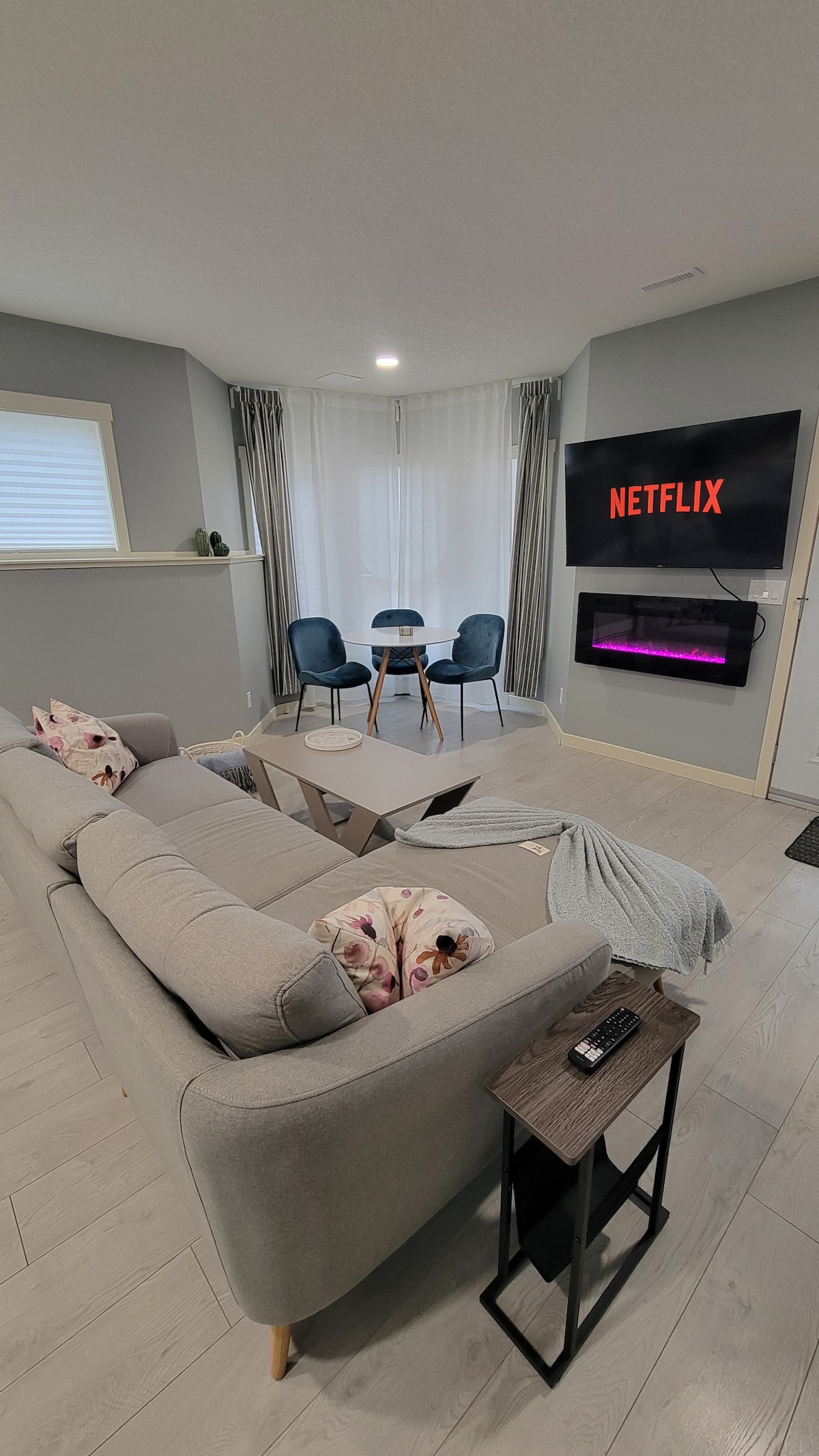 Disfruta de una entrada privada independiente a esta suite de un dormitorio en el nivel inferior, limpia y bien equipada. Cocina equipada, lavandería en la suite, aparcamiento privado y espacio al aire libre. Ideal para estancias largas, perfecto para una persona o una pareja. Cocina → totalmente equipada con lavavajillas, fogones, microondas, etc. → Dormitorio acogedor con colchón Serta queen Chimenea de→ gas, salón de concepto abierto, TV Espacio de→ trabajo + wifi → Amplio baño de 4 piezas → Cuarto de lavandería → Estacionamiento fuera de la calle La suite secundaria legal tiene calefacción/ventilación dedicada.