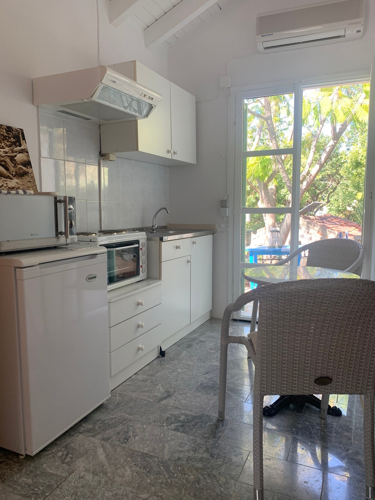 ¿Buscas el cielo? Lo encontrarás al final de la pintoresca playa de Otzias, a 5 km del puerto de Ceos. Un bungalow único, en una ubicación increíble, justo junto al mar, ¡a solo 33 pasos de tu propia playa rocosa! El acceso al mar no podría ser más fácil, en realidad se puede pescar desde el porche. Esta miniplaya privada parece un sueño, ya que es un lujo que rara vez se encuentra a precios económicos, pero todo es muy real. El estudio es completamente privado y autónomo y ofrece vistas impresionantes.