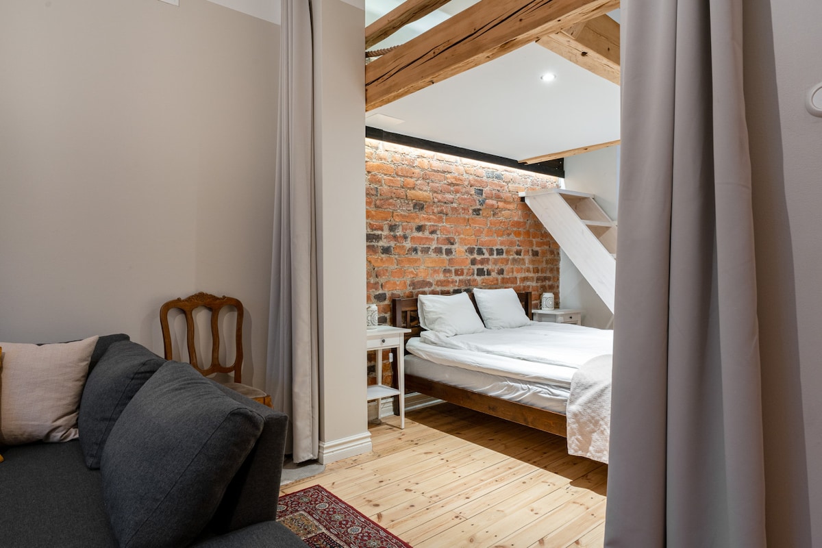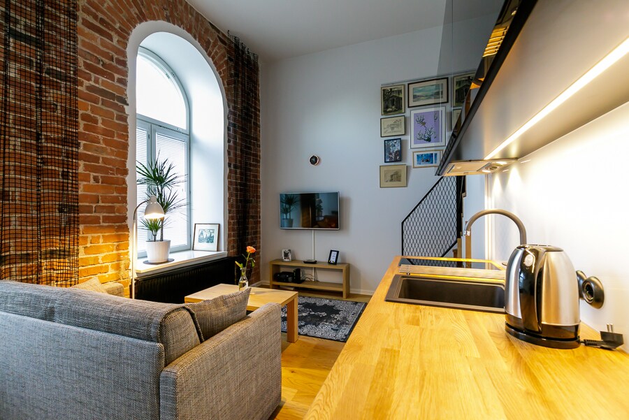Stay in a converted 19th-century spirits factory! This spacious 29 m² loft blends historic limestone walls with smart, modern living. Located perfectly on the border of the medieval Old Town and the trendy Rotermann Quarter, you are steps away from the city's best cafes and sights. With 24/7 concierge service, elevator access, and a cozy mezzanine bedroom, it is an ideal choice for couples, business travelers, or city explorers.