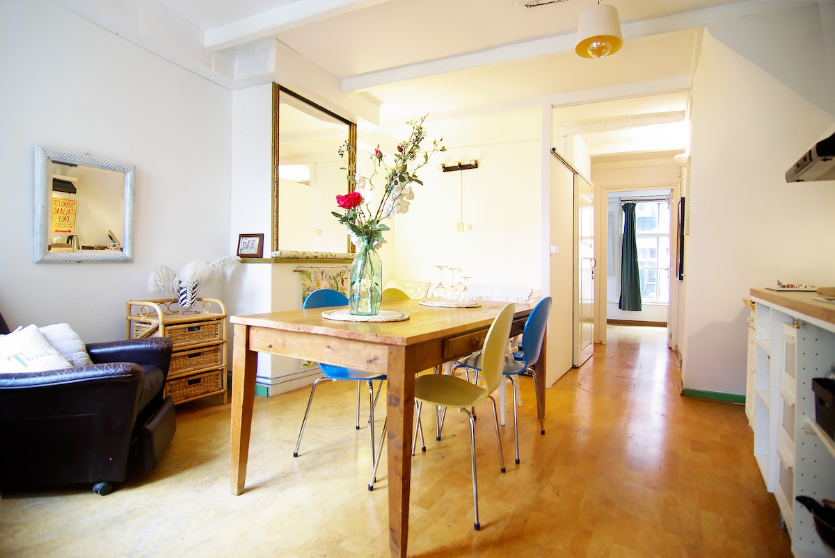 En pleno centro de Ámsterdam y muy adecuado para familias con niños. Después de una renovación de 14 meses, estamos listos para recibir huéspedes que aman el espacio y la calidad. Este es un apartamento de alta gama con dos dormitorios, adecuado para 4 personas. El apartamento es un lugar tranquilo escondido en medio del epicentro de Ámsterdam. El apartamento no incluye desayuno, pero hay un servicio de desayuno disponible en la tienda de delicatessen cercana o en las cafeterías de desayuno y el supermercado está a poca distancia a pie.