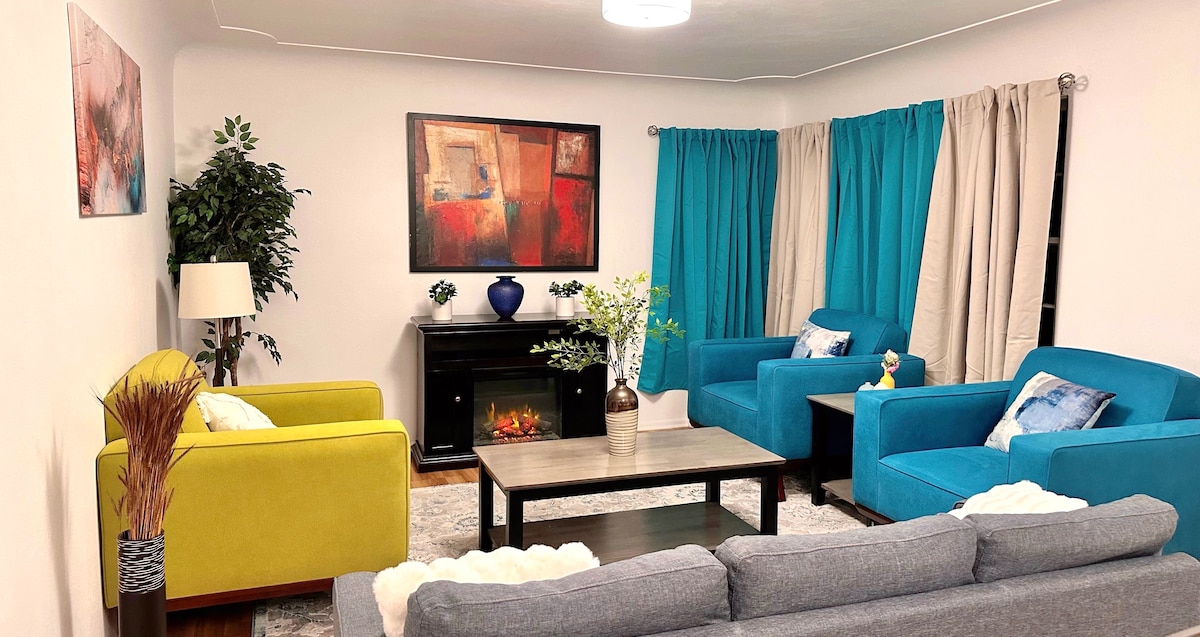 ¡Bienvenido a su tranquilo refugio de 3 dormitorios! Ubicado en un entorno rural tranquilo, pero cerca de Raging Waves y el área metropolitana de Chicago. Esta unidad del segundo piso llena de sol ofrece un estilo romántico artístico con vistas a la naturaleza. ¡Disfruta de una entrada privada, balcón con vistas a un jardín de frutas, cocina acogedora, decoración elegante, estaciones de trabajo en cada habitación! Perfecto para familias, parejas o grupos pequeños. Para tu estado de ánimo romántico, tenemos 4 luces U Smart RGB y luces inteligentes y música en el baño. ¡Cultiva más profundamente, descansa mejor, diviértete!