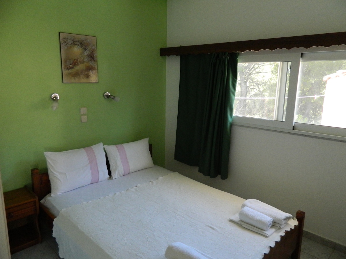 Relájate con toda la familia en este lugar tranquilo para hospedarte. Estudio en planta baja de 46 metros cuadrados y 2 habitaciones en Koutsoumbri Beach, Northern Evia. El estudio tiene 1 dormitorio, 1 baño y una sala de estar-cocina de planta abierta, totalmente equipada. ¡El dormitorio tiene 1 cama de matrimonio con balcón y sala de estar, 1 sofá cama con salida de balcón! ¡Tiene un patio y estacionamiento! ¡Mascotas acogedoras! A 15 metros de la playa de Koutsoumbri A 20 metros del bosque