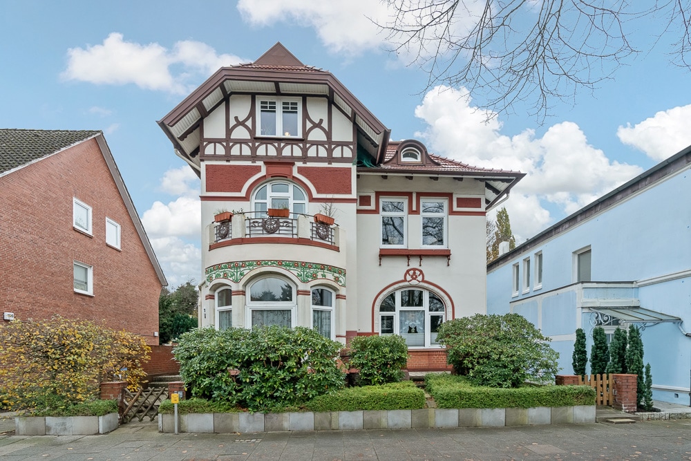 Habitación de edificio antiguo con balcón en HH-Winterhude