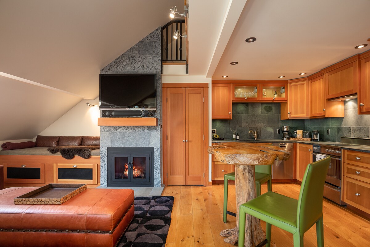 **HOT TUB CLOSED from Nov to late February 2026 for renovations** The Main Street loft is centrally located on Main Street in the Marketplace area of Whistler Village North. Newly renovated loft space with high ceilings and patio with mountain views! FREE PARKING, HOT TUB + bike storage. The loft is located on 3rd floor of a mixed commercial/residential building. It's near grocery store, coffee shop, restaurants, bars, liquor store & shops. 7-10 min walk to gondola & 1 min to Olympic Plaza.