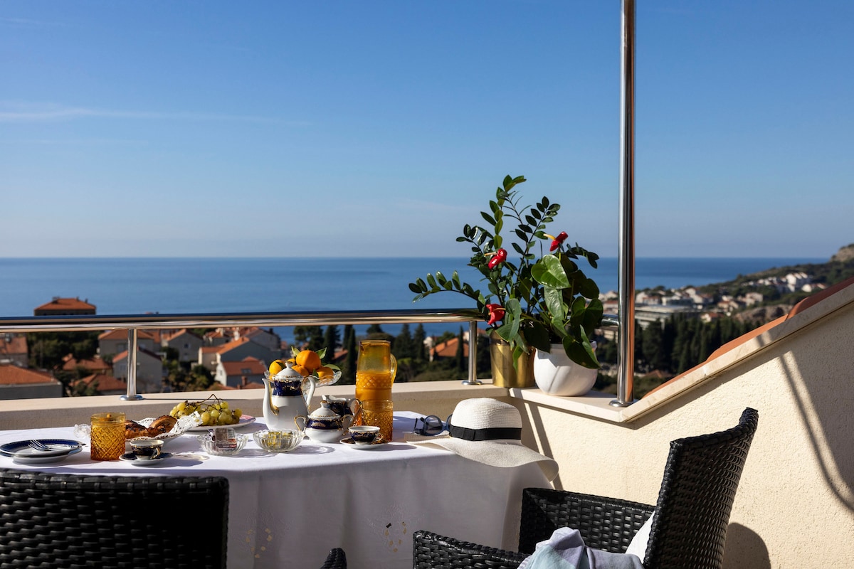 Enjoy sweeping, one-of-a-kind views of Dubrovnik's old town and the Mediterranean from your balcony. Tastefully furnished, comfortable, spacious and light-filled apartment in a quiet, charming hillside neighborhood, with plentiful amenities and reserved parking in front. The apartment has newly renovated bathroom and kitchen, and is equipped with Wi-Fi, A/C and heating, cable TV, Bluetooth speaker, washer and dryer, comfy mattresses and pillows, cotton bedding, luxury toiletries and more.