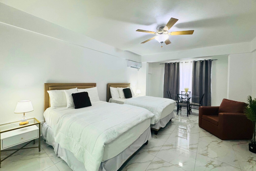Las propiedades de Pearl of the City son la primera opción cuando se trata de disfrutar de una experiencia elegante en un lugar céntrico con un presupuesto ajustado. Este apartamento está totalmente equipado con todas las necesidades necesarias para tener una estancia sin estrés. El apartamento está a poca distancia a pie de: Museo Bob Marley, 100 Casino & Restaurant, otros restaurantes, Sovereign Mall y supermercado. (Capacidad para 4 personas cómodamente) - COCINA EN LA UNIDAD: microondas, hervidor y fregadero. La cocina completa está en un área separada. Un saludo, POTC