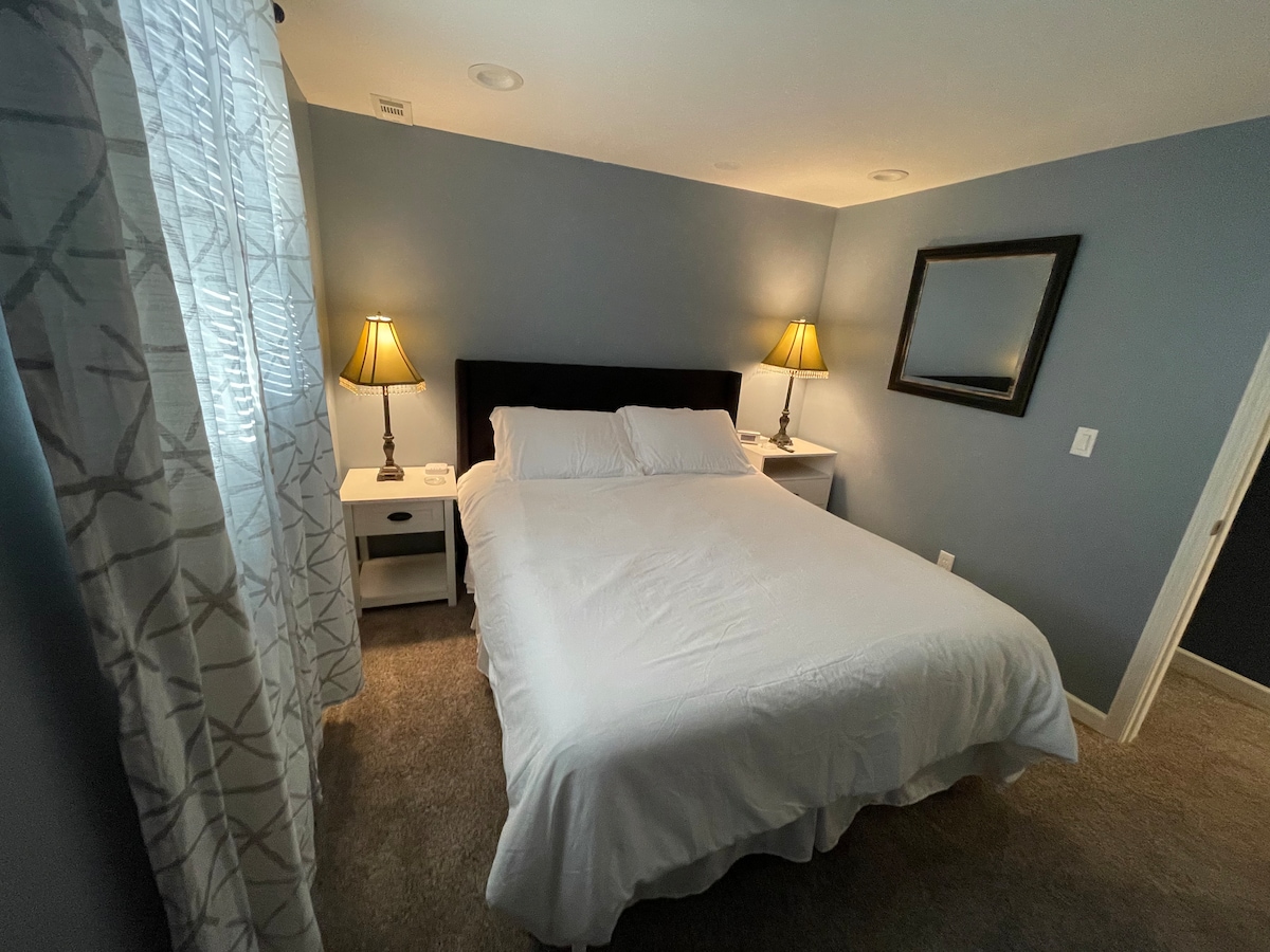Esta cómoda casa adosada de 2 dormitorios y 1,5 baños es perfecta para un máximo de 5 huéspedes. Cama tamaño king de lujo en el dormitorio 1 y cama tamaño queen de lujo en el dormitorio 2. Se puede utilizar un futón en la sala de estar para un quinto huésped. Hay un parque infantil disponible bajo petición. Esta dinámica ubicación está a 5 minutos de bares, restaurantes, tiendas, la Universidad de Lindenwood y el Casino Ameristar. Está a solo 2 millas de St. Charles, histórico, calle principal, y está a solo 15 minutos del aeropuerto, y a unos 30 minutos del centro de St. Louis.