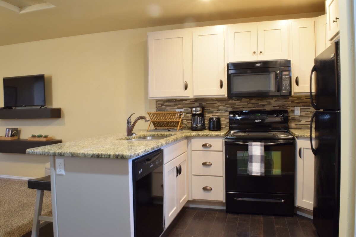 ¡Alojamiento limpio y cómodo! ¡A 11 minutos del Snow Canyon State Park y a 10 minutos del anfiteatro Tuachan! No muy lejos del Parque Nacional Zion. 1er dormitorio: cama tamaño queen, armario, rincón de lectura, espacio de almacenamiento adicional. 2do dormitorio: cama tamaño queen/literas. Baño: bañera/ducha, lavadora/secadora. La cocina es pequeña pero práctica: nevera, fregadero, horno tostador, microondas, placa eléctrica, kurik, etc. Sala de estar: sofá reclinable, silla giratoria, TV inteligente, chimenea eléctrica y escritorio/espejo. *Actualización* ~ ¡agua caliente instantánea!