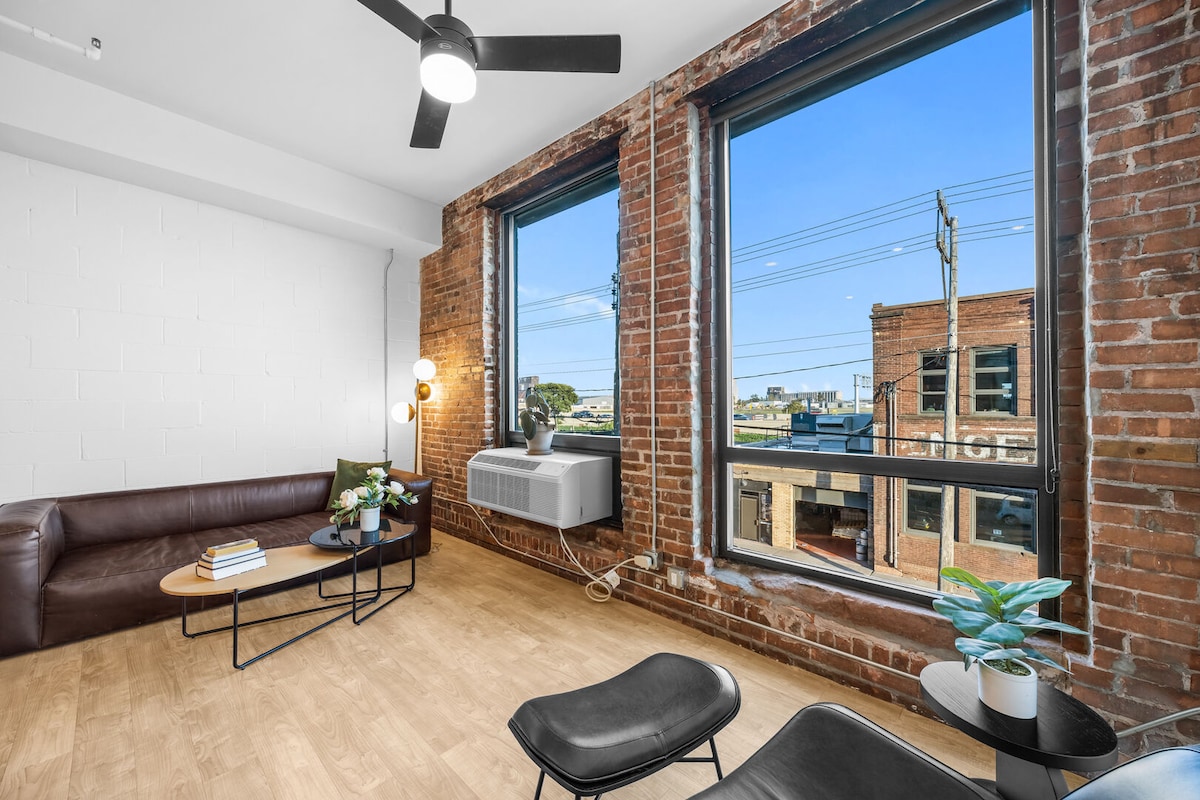 Enger Lofts Hotel es tu escapada de aventura en el corazón del distrito artesanal de Duluth, Minnesota. Remodelado en 2020, este almacén de la década de 1800 cuenta con una cocina moderna, techos altos y grandes ventanales en un estudio espacioso y acogedor.