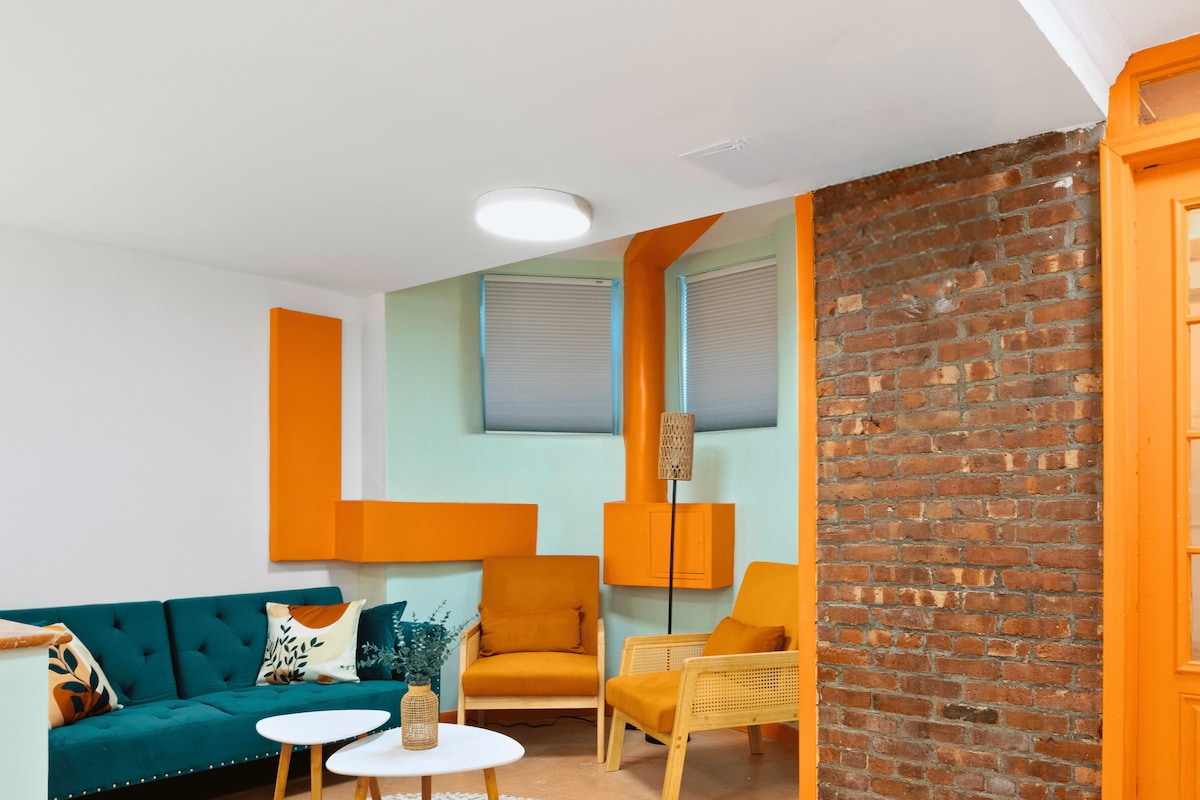 ¡Bienvenido a Vintage Luxe, un impresionante hito de 1894 en Sugar Hill restaurado en una lujosa boutique! Esta elegante unidad a nivel del jardín muestra una impresionante decoración neovintage, paredes de ladrillo visto y una ubicación privilegiada (¡Puntuación de tránsito 100!). El espacio incluye una cama tamaño queen, wifi de alta velocidad, una estación de trabajo dedicada y una cocina totalmente equipada. Sal a tu patio trasero privado con una hamaca, un lujo raro en Nueva York. Perfecto para viajeros solitarios, parejas o grupos pequeños que buscan una estancia céntrica y elegante.