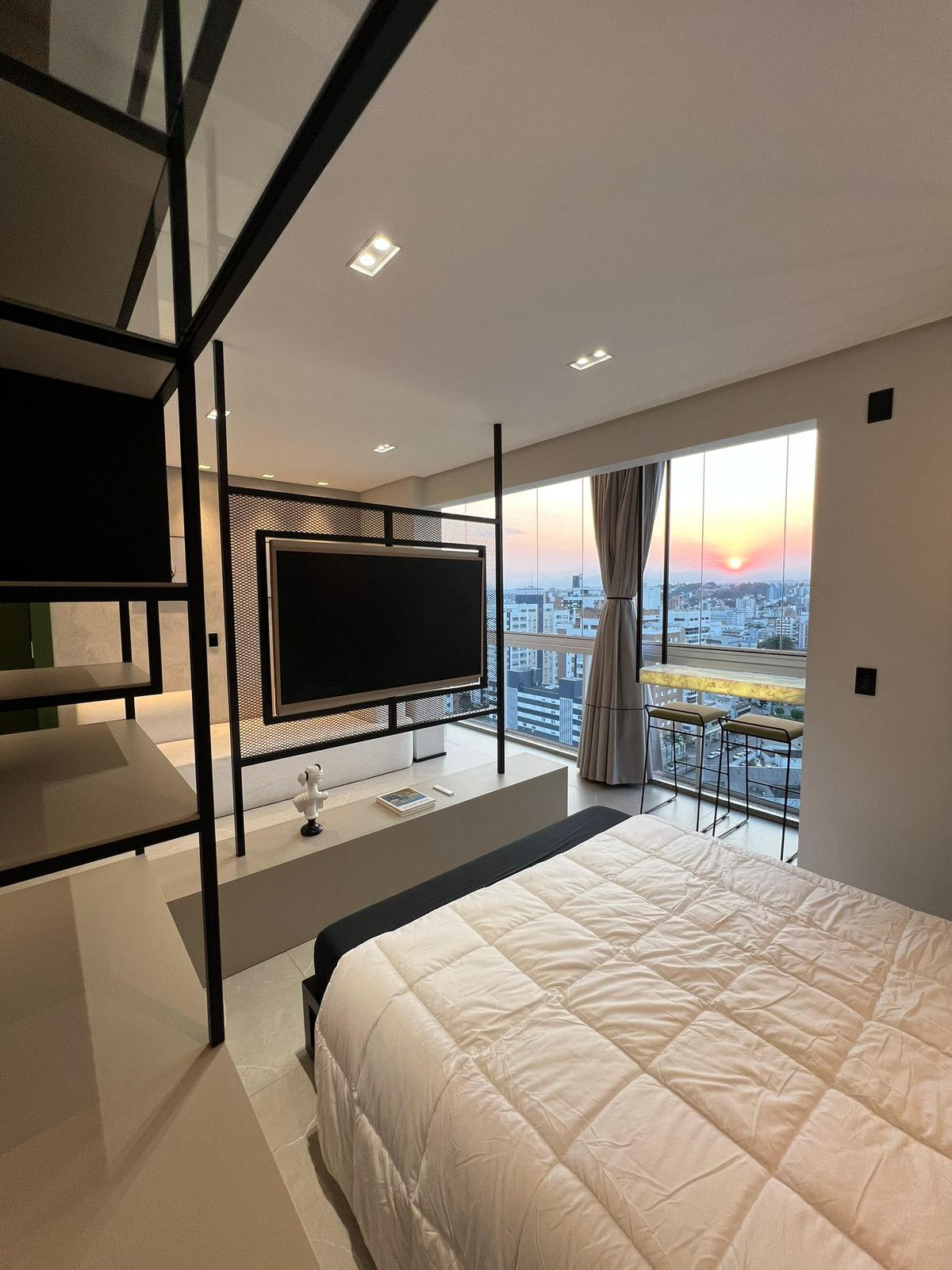 Les presento un departamento tipo estudio moderno, práctico y totalmente amueblado, ubicado en el Hub Smart Home, con una ubicación estratégica en el centro de Criciúma. ACERCA DEL ESTUDIO El estudio está completamente amueblado y equipado, y se encuentra a pocos metros de supermercados, farmacias, tiendas, hospitales y restaurantes. Ofrece toda la practicidad y la comodidad que busca. ACERCA DEL CENTRO El edificio está totalmente automatizado, diseñado para Airbnb. En él, tiene acceso al gimnasio, a la zona de coworking las 24 horas, a la lavandería, a la tienda autónoma y al portabicicletas.