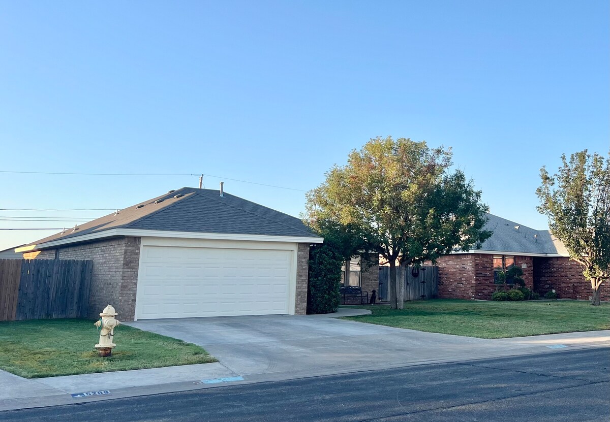 Alójate en esta moderna y elegante casa de Midland ubicada en una tranquila calle sin salida. Disfruta de una sala de estar de concepto abierto, cocina totalmente equipada, amplios dormitorios, oficina funcional con configuración de doble monitor, amplio estacionamiento para remolques y un patio trasero privado cercado con césped. Perfecto para familias, trabajadores y estadías largas. Limpio, cómodo y diseñado para la relajación, este alojamiento ofrece el refugio ideal en el oeste de Texas cerca de todo en la ciudad.