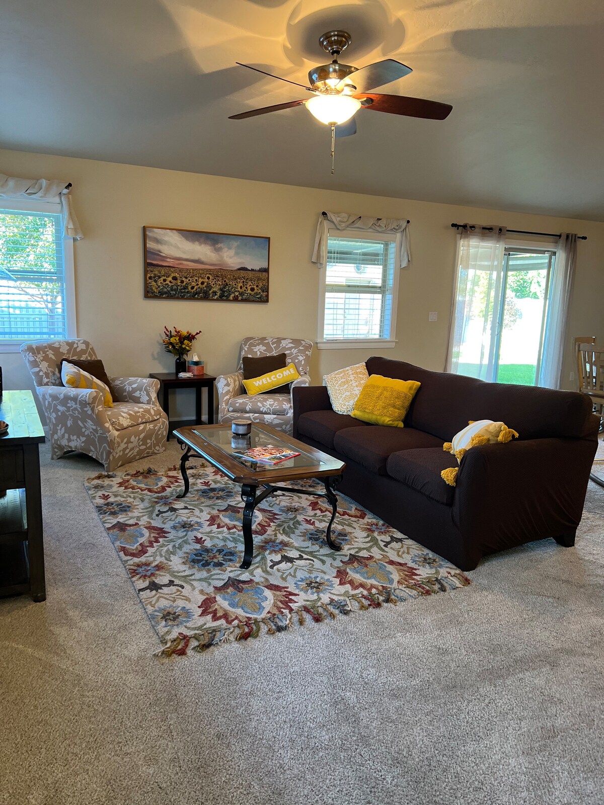 ¿Estás pensando en mudarte a nuestro hermoso estado, construir o vender una casa y necesitas alojamiento a corto plazo? Utiliza mis servicios inmobiliarios y recibe hasta un 50 % de crédito en tu estancia. Además, asegúrate de preguntar por mi revista gratuita Boise Relocation Magazine, que está llena de información sobre nuestras ciudades circundantes. ¡UBICACIÓN, UBICACIÓN! A 1 milla de la Meridian I-84, en un barrio tranquilo. Casa totalmente amueblada, cocina equipada, baños, lavandería, internet de alta velocidad y garaje para 2 coches.