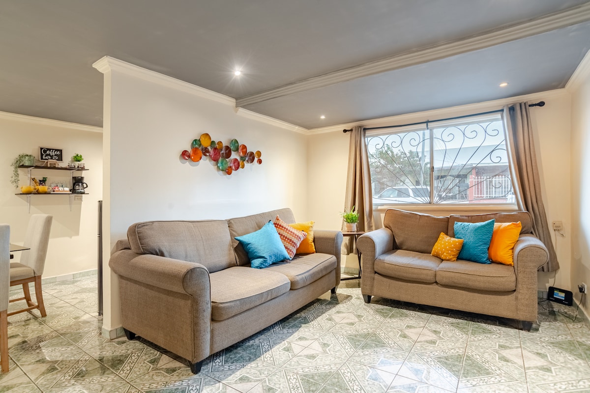 Casita caracol cuenta con una habitación con cama queen, y un futon cómodo en el área de sala comedor. Esta ubicado en la parte trasera de nuestra casa comunicados por el patio, alberca y un asador los cuales, son de uso exclusivo de las personas que se hospedan con nosotros . El lugar se caracteriza por ser muy tranquilo y rodeado de un lindo jardín. Contaras con acceso independiente a la casa, así como estacionamiento para 1 carro dentro de la propiedad, y en la parte exterior.