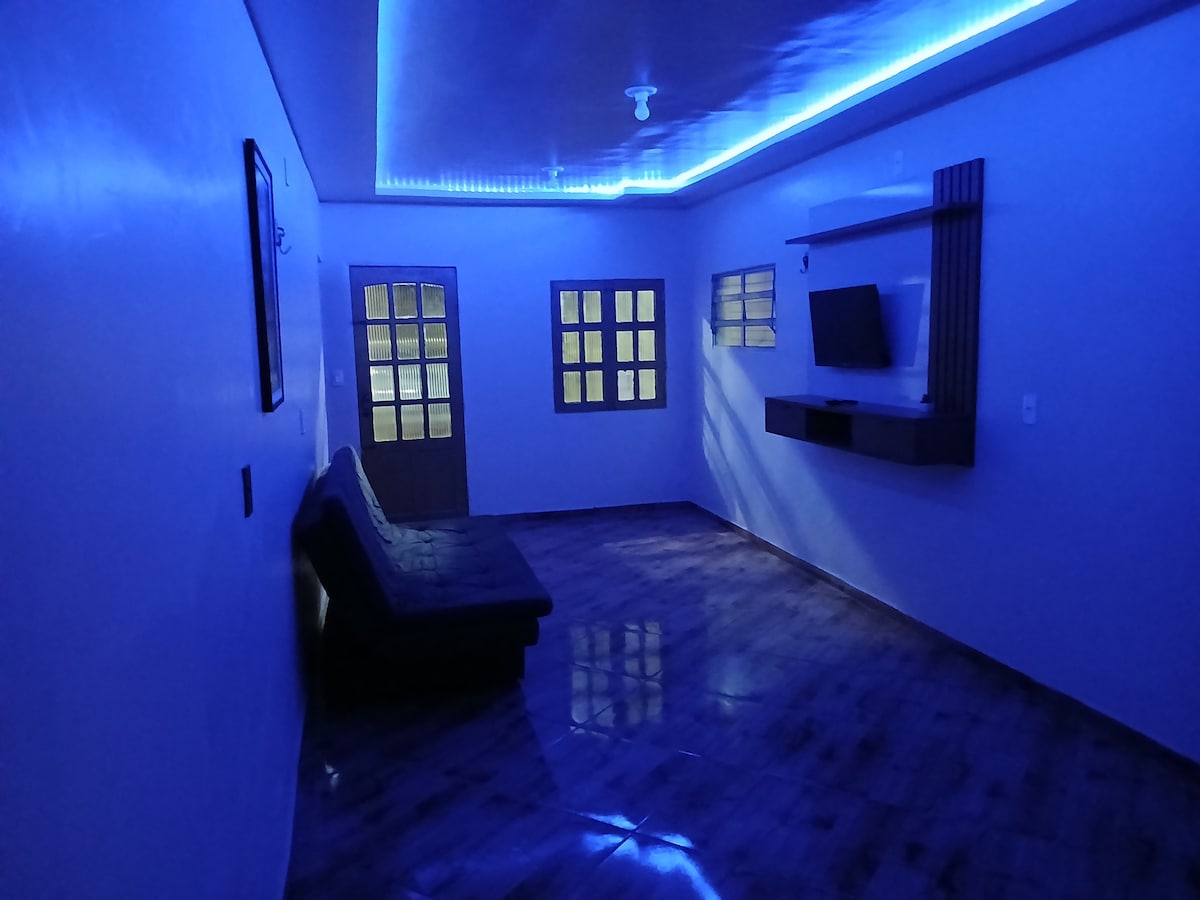 A casa conta com portão, interfone, cerca elétrica, garagem, portão eletrônico. O pátio coberto oferece escápulas p/rede. A sala de estar/TV/jantar é aconchegante. São duas suítes climatizadas e c/chuveiros elétricos: uma c/ cama de casal, outra c/cama de casal, cama de solteiro, berço e guarda-roupas. A cozinha é completa e a área de serviço dispõe de máquina de lavar. O quintal, parcialmente calçado e coberto, conta com banheiros externos.