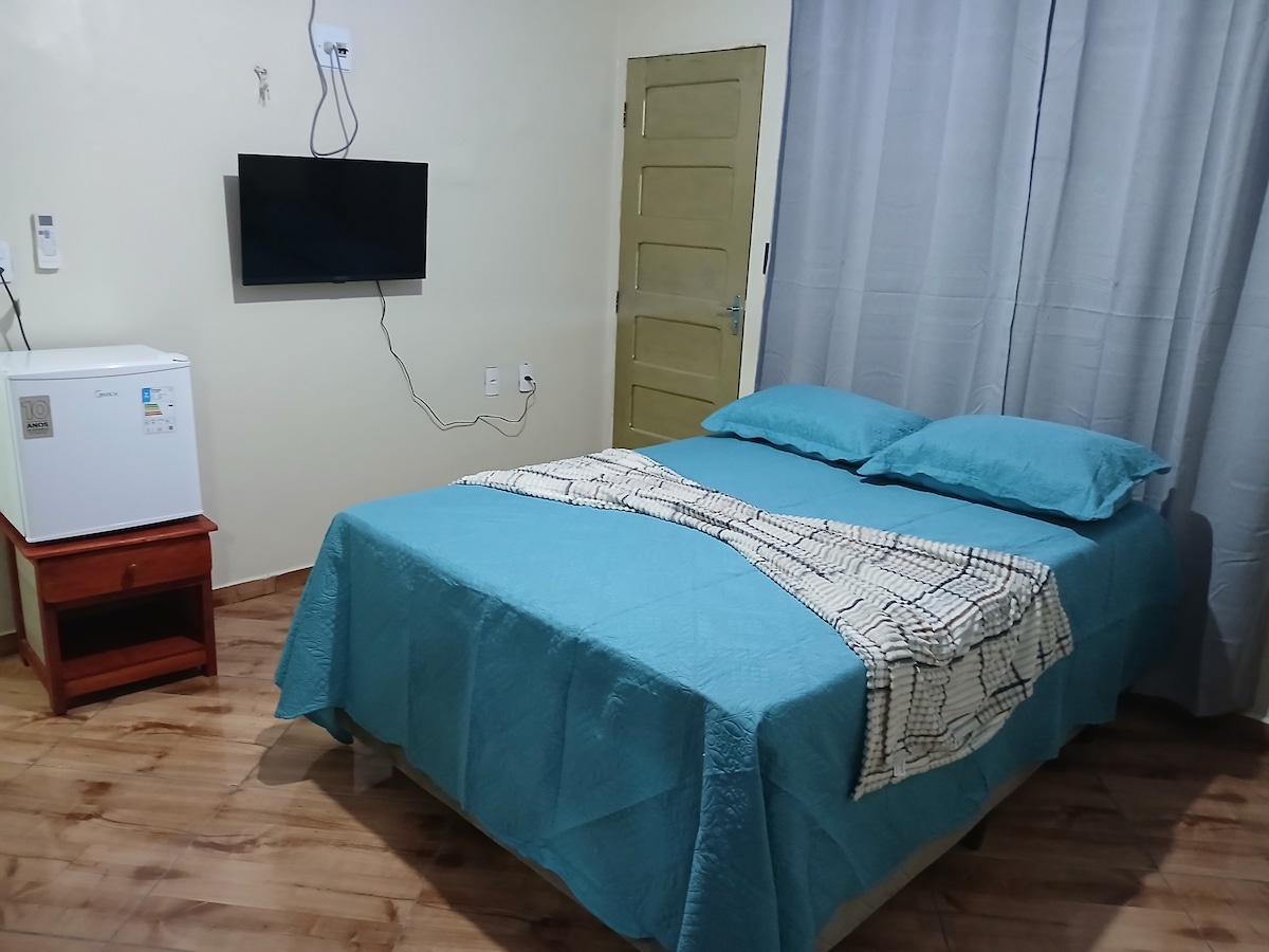 Acomodação confortável para até 4 pessoas, prática e muito bem localizada Você estará a poucos minutos do centro, aeroporto e cercado por padarias, restaurantes, farmácias, sorveterias e muito mais O ambiente é super equipado para te receber com conforto: 🛏️ Cama aconchegante 📶 Wi-Fi de alta velocidade 🚗 Vaga para estacionamento ❄️ Ar-condicionado ☕ Cozinha com utensílios 🧺 Toalhas e roupa de cama limpas 🧼 Ferro de passar disponível Tudo pensado para que você se sinta em casa