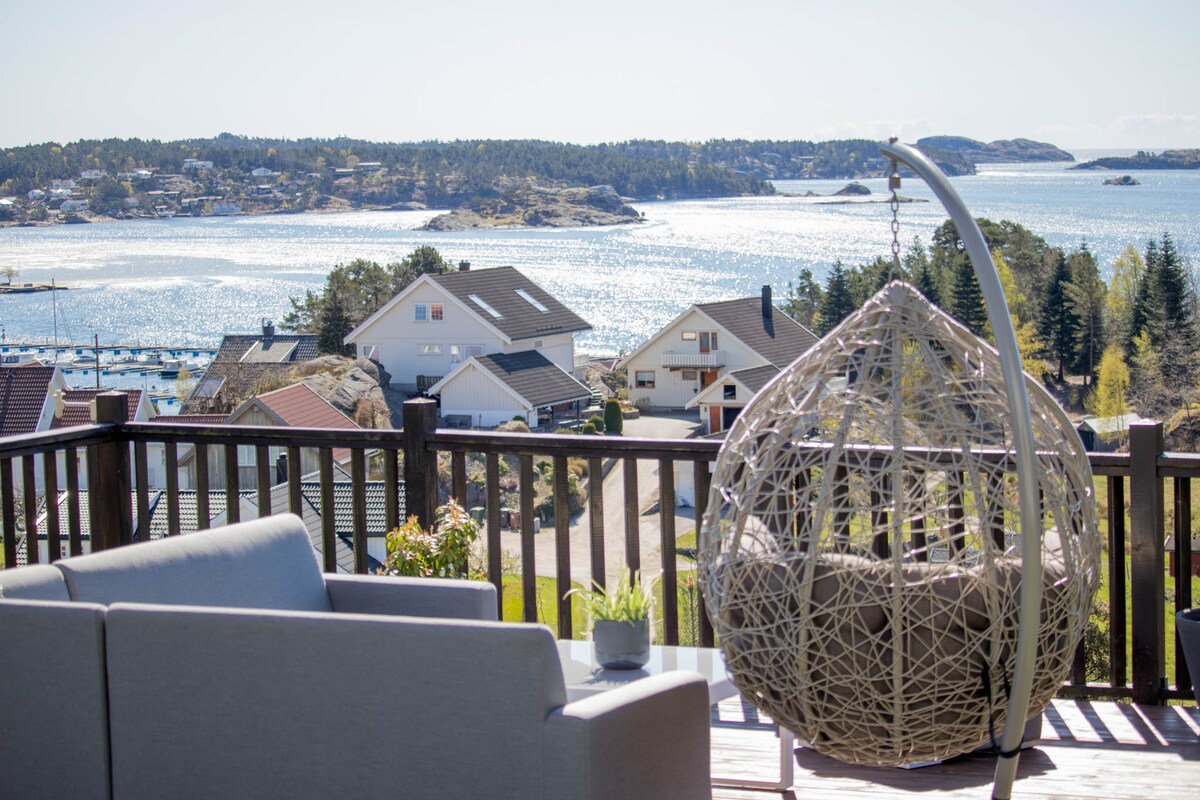 Apartamento luminoso y acogedor en la hermosa Flekkerøy con una hermosa vista del mar. Recientemente renovado, todos los muebles y accesorios son nuevos y acogedores. Recuéstate en el encantador sofá y deja que tu mirada descanse en el mar. Zona tranquila con excelentes zonas de senderismo justo afuera de la puerta. A 15 minutos del centro de Kristiansand, a 3 minutos a pie de la pequeña y acogedora zona de playa y muelle de la zona. Se ha colocado ropa de cama y las toallas están listas para su llegada. Este apartamento ofrece tranquilidad. Cálida bienvenida :)