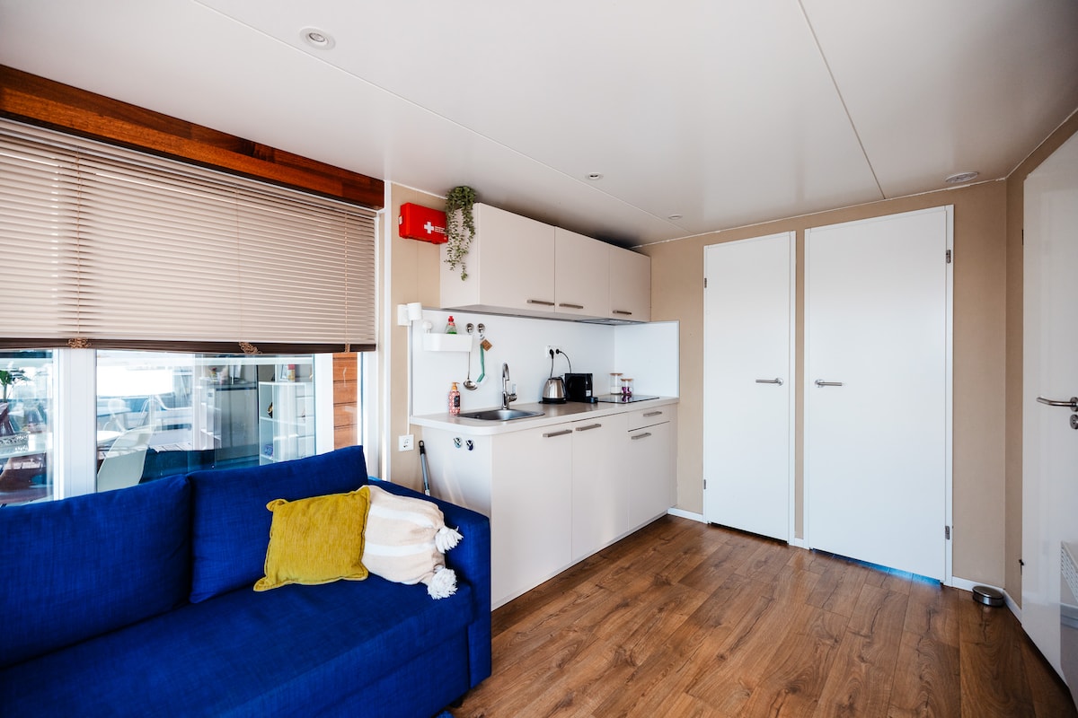 Welcome to The Cosy Houseboat, one of the accommodations at Ubuntu Lake Houses. This fully equipped houseboat embraces you with a holiday vibe. With a lovely canopy in the garden to seek shade during warm days and enjoy the sun through the sliding doors in winter with the wood stove on to keep you extra warm. With direct access to the clear water and all amenities within walking and cycling distance, it's the perfect spot amidst the Vinkeveense Plassen.