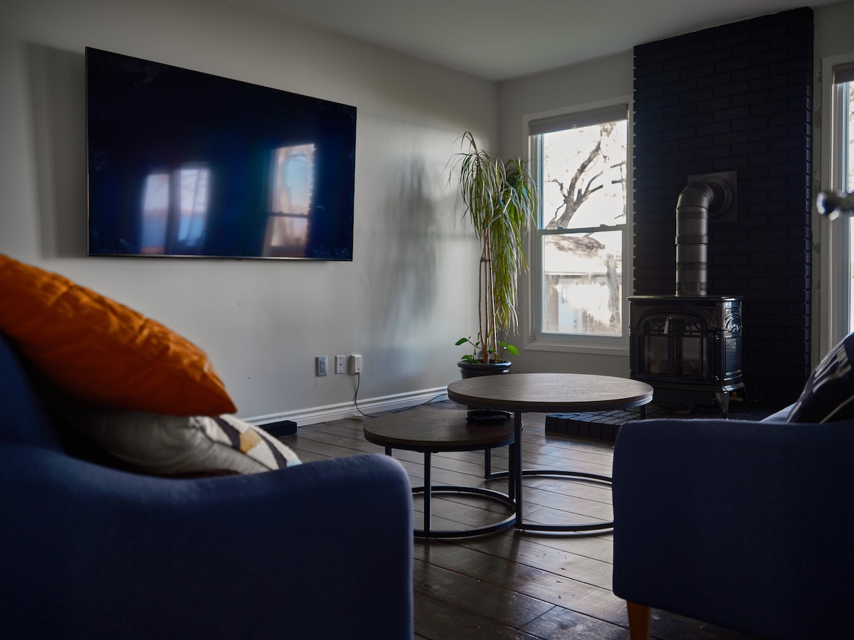 Impresionante iglesia convertida de 1800 en el condado de Prince Edward con comodidades modernas en una gran propiedad. Este espacio único de 4 dormitorios ha sido restaurado para darle un toque moderno con todo el encanto único de antaño. Ubicada en 3 acres, esta propiedad da a la bahía de Quinte. A solo 15 minutos del viñedo más cercano, a 20 minutos de Wellington y Bloomfield. La propiedad incluye wifi, Netflix, PrimeTV, Sonos, sábanas/toallas limpias, café, lavandería, leña para la chimenea de leña y una chimenea de gas, ¡y mucho más!