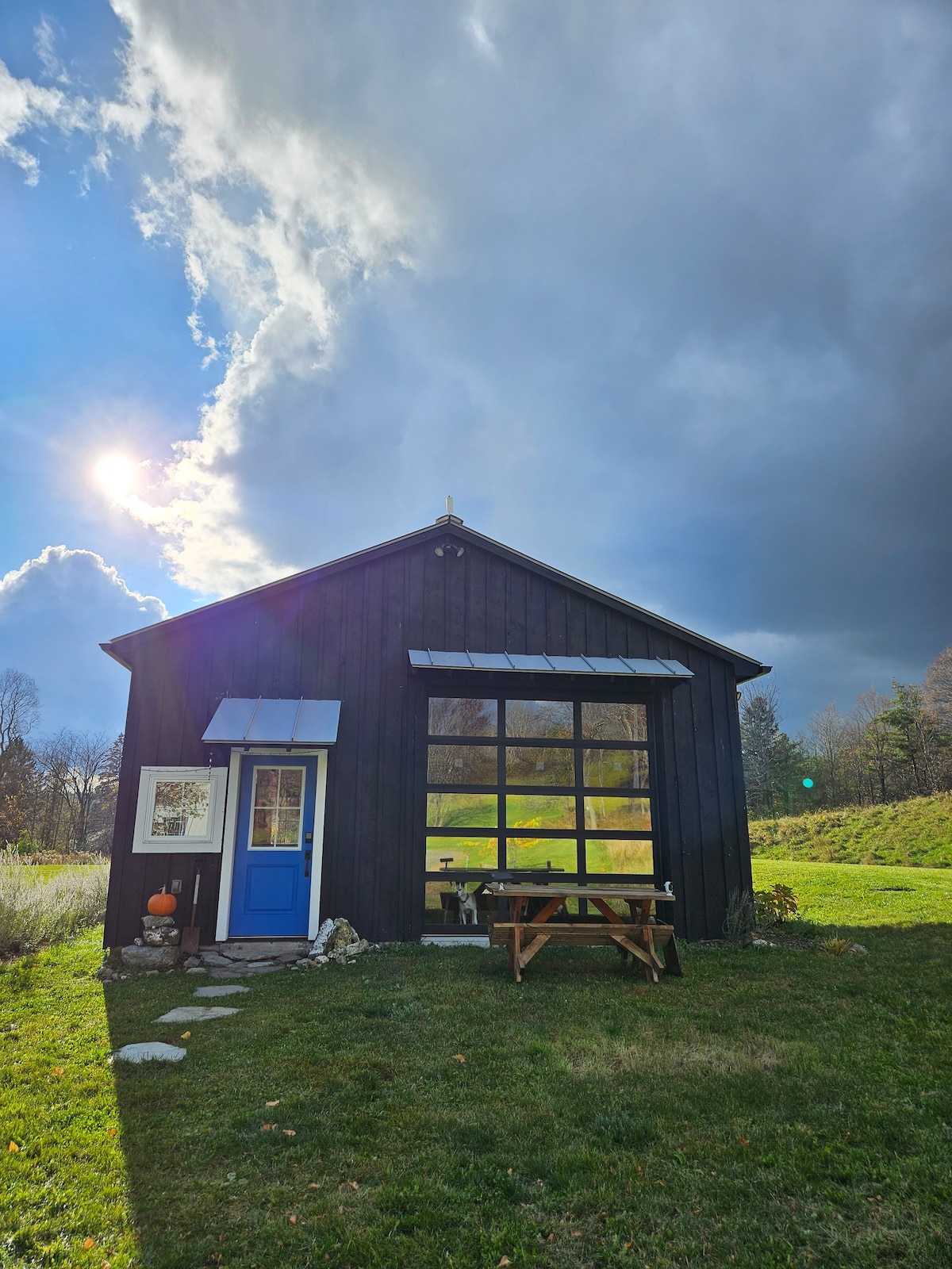 Encantador estudio en el segundo piso de una granja de productos agrícolas en el hermoso condado de Berkshire. Conveniente para muchas atracciones locales como Tanglewood, la estación de esquí de Bousquet Mountain, Naumkeag, teatro local, museos y mucho más. Visita nuestro puesto de la granja desde finales de junio hasta mediados de octubre para obtener verduras frescas, productos horneados y nuestra deliciosa mazorca de maíz. Pasa tiempo visitando a las cabras, caballos y pollos de la granja, o simplemente relájate en el balcón y disfruta de las vistas.