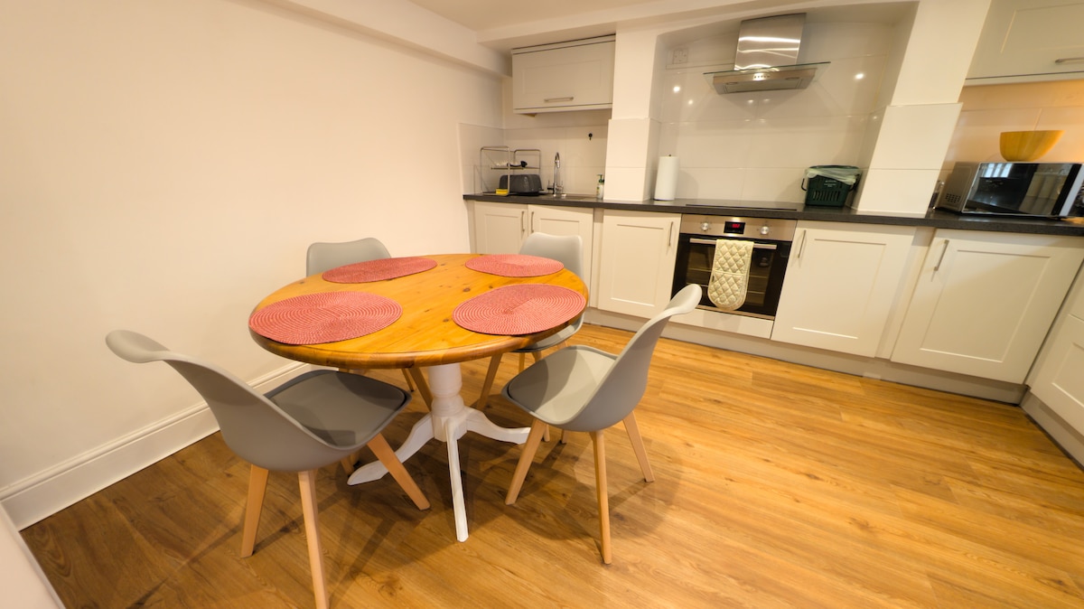 Este es un apartamento de un dormitorio, planta baja, recientemente reformado, con entrada privada y área de jardín trasero. El edificio está ubicado en el corazón de Cheadle. Muy cerca de tiendas, restaurantes, pubs y transporte público. A 10 minutos del aeropuerto de Manchester y a 20-25 minutos en coche del Manchester City. El departamento tiene 1 dormitorio recién decorado con una cómoda cama doble. La amplia sala de estar/cocina de planta abierta tiene un sofá cama - adecuado para 2 adultos, sin embargo, es una pequeña cama doble.