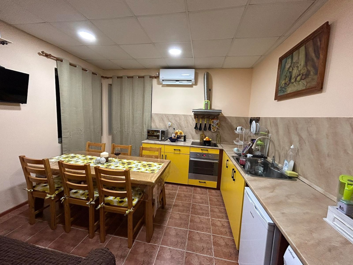 Se encuentra en la ciudad de Veliko Tarnovo, al pie de las tres colinas de Arbanassi, Tsarevets y Trapezitsa, en un barrio limpio, tranquilo y silencioso. Disfruta del aire fresco y la hermosa naturaleza, las impresionantes vistas de los lugares de interés histórico, así como de la comodidad y el confort de nuestra casa de huéspedes. Casa independiente, tiene dos habitaciones triples, estudio para cuatro, cocina moderna y comedor, lavadora, secadora, sofá cama, terraza en dos niveles, garaje, plazas de aparcamiento gratuitas. Parque infantil frente a la casa.