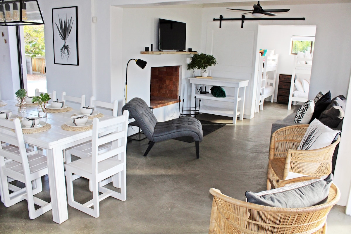 ¡Escápate a Family Wave en L'Agulhas! Relájate en nuestra impresionante casa de vacaciones de 3 dormitorios, perfecta para familias Situada en la encantadora ciudad de L'Agulhas 2 dormitorios con camas de matrimonio, 1 dormitorio para niños con 2 literas 1 baño privado con ducha 1 baño adicional con bañera Splash pool Acomódate junto a la chimenea interior o la hoguera al aire libre. A poca distancia de las pozas de marea, tiendas y restaurantes. Reserva tu escapada de ensueño en «Family Wave»