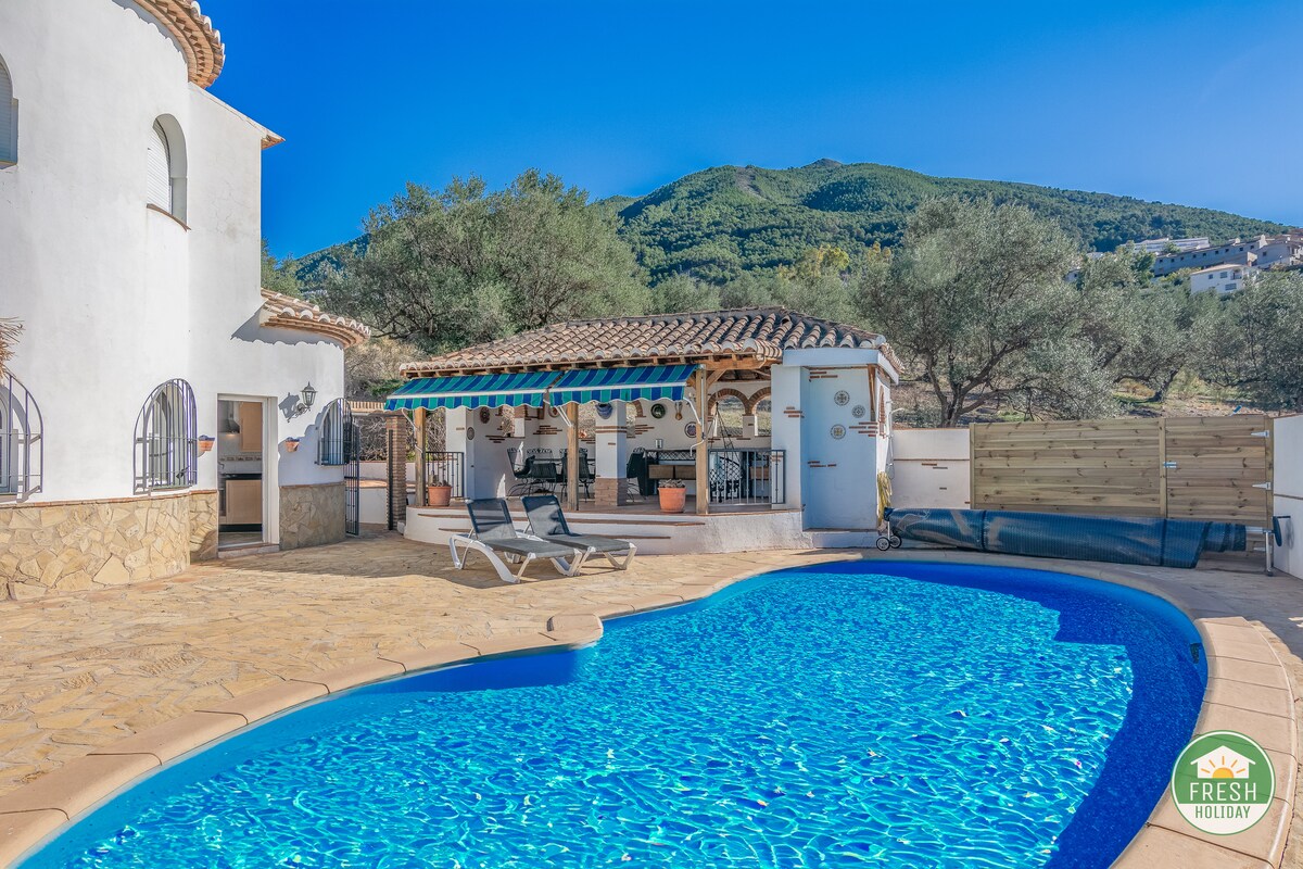 Secluded in a valley just above a stream, rustic and rural, a great place to get away from it all ,ideal for families,groups or couples. Set in an olive grove of about an acre,with various terraces leading down to a stream at the bottom ( dry in summer) Fenced off private pool 9x5 (approx) with solar heating and bar area and table tennis outside the house. The beach at Torre del Mar is 50 minutes away, along with large supermarkets at Velez-Malaga. The village of Comares is 10 minutes away .