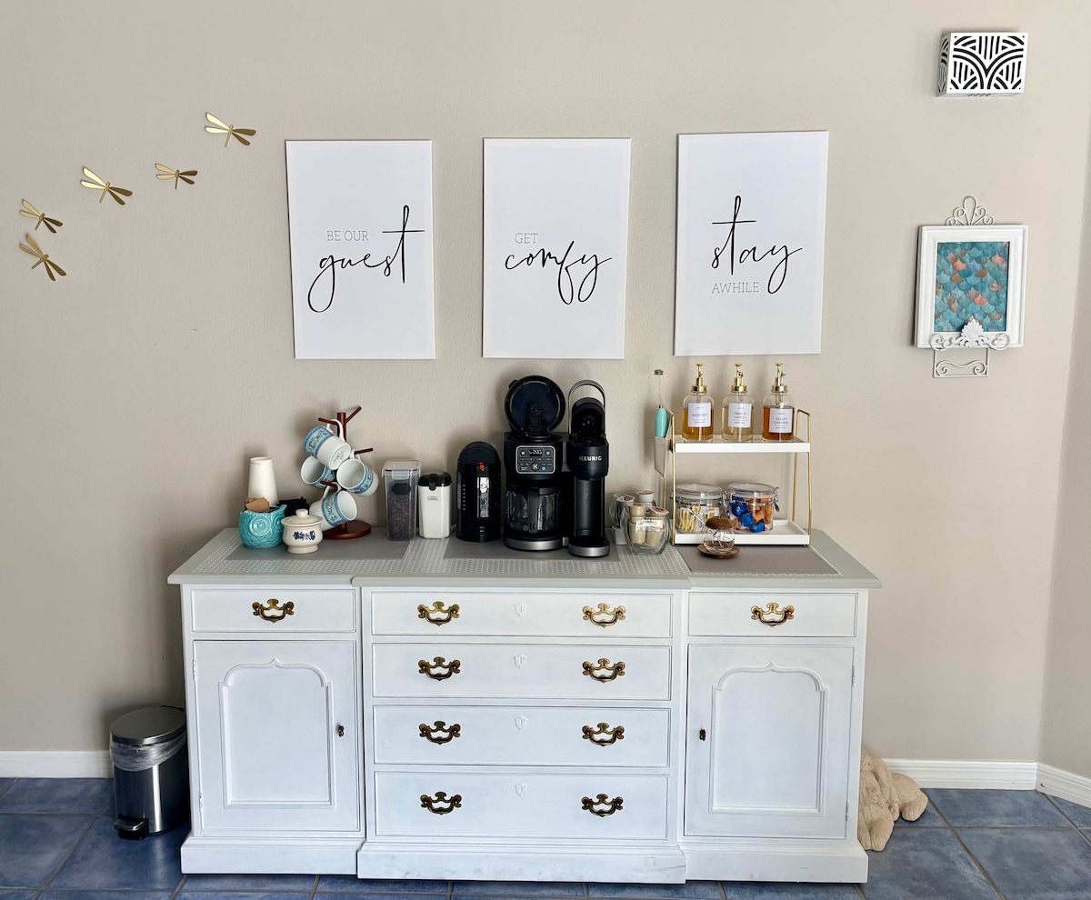 Ven a disfrutar de la vida en la amigable ciudad de Florida: ¡los pueblos!¡Hermosa, actualizada y contemporánea decoración “playera”! Barrio tranquilo y amigable de primer nivel; a 3 millas de Spanish Springs o Sumter. Respalda la hermosa entrada a Glenview; ¡Tiene estanques /cascadas/vida silvestre! ¡Relajante! Entrada privada/estacionamiento 1-BR, 1-B, 1 espacio de estar/cocina pequeña, patio trasero/patio. Lavandería. WIFI. Alquiler:$ 80-97 días, dependiendo de la época del año. (Mínimo 5 noches) limpio $ 100.+ Presa. dep. +7% de impuestos YA SE RESERVA el 1 dediciembre de2024-Ap.1, 2025