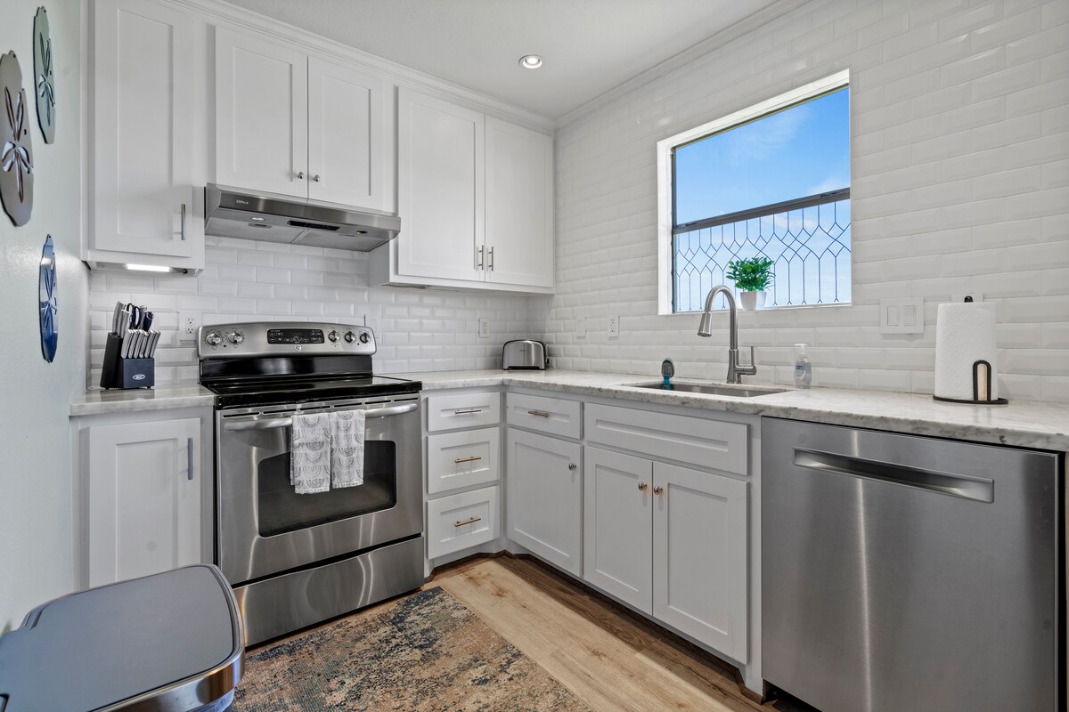 Perfectamente situada entre el centro de la ciudad y la playa, esta casa recién terminada y llena de luz es el lugar perfecto para aquellos que quieran explorar todo lo que Galveston tiene para ofrecer. Con diseños elegantes que enfatizan la funcionalidad, la casa tiene capacidad para cinco personas, cuenta con una cocina completa, un comedor - espacio de trabajo, zona de lectura en el segundo piso, zona de entretenimiento al aire libre y lavadora y secadora de tamaño completo. Cuando no estés disfrutando de la decoración contemporánea o de la sala de estar al aire libre, puedes explorar la encantadora ciudad histórica cercana.
