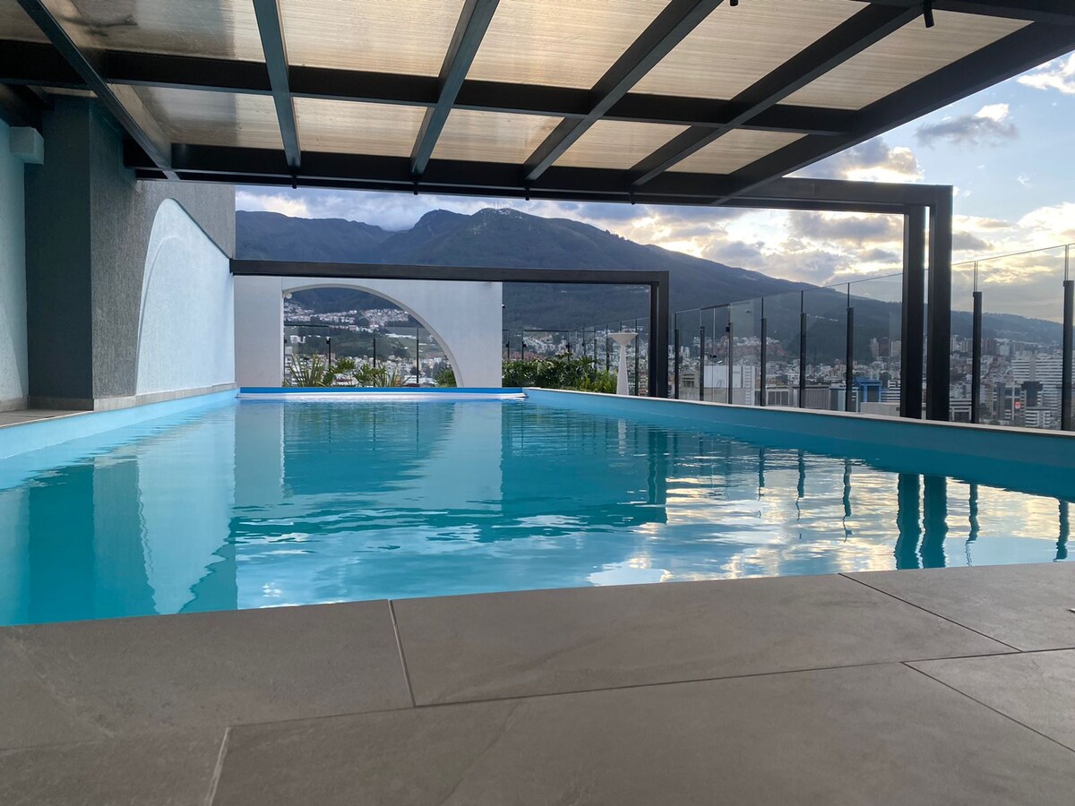 Traje de lujo Quito, piso😎 18, terraza con vista 360🤳 y🏊♀️