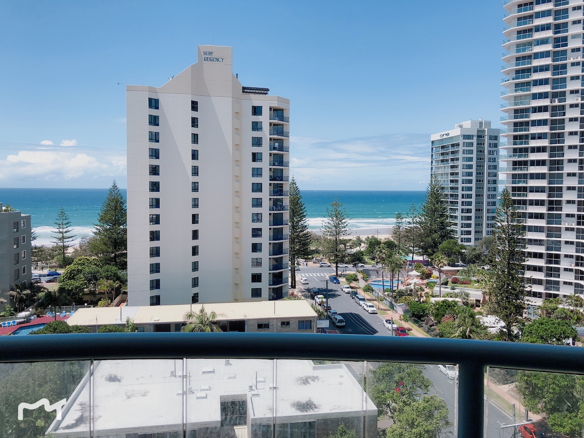 Nuestra habitación privada única de hotel está ubicada en el piso superior de Mantra en View Hotel, con excelentes vistas al mar, la ciudad y la montaña desde el balcón privado. Se encuentra justo en el corazón del paraíso de los surfistas, a solo 1 minuto de la playa, tiendas y transporte público, etc. Hay disponible WiFi gratuito, un televisor inteligente, se puede ver YouTube, Stan, etc. ofrecemos registro anticipado sin cargo adicional, dependiendo de la disponibilidad, pero no hay salida después de la hora establecida( haz el check-out antes de las 10: 00 a. m., gracias).