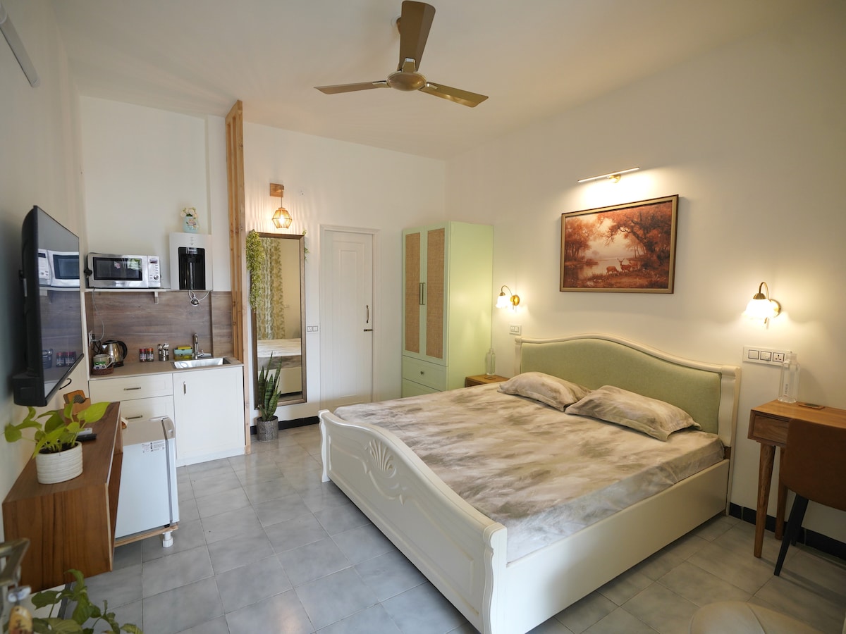 ¡Vistas desde el balcón, aparcamiento! Habitación tranquila en un 2BHK