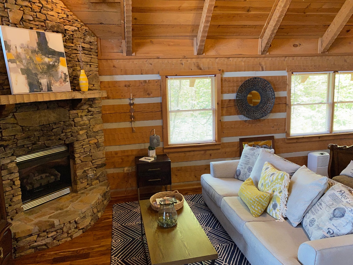 This is a beautiful, brand new log cabin. It is the perfect spot for a honeymoon or a romantic couple's retreat yet spacious enough to bring along 2 kids for a fun family getaway. This cabin sits tucked away right on the rushing creek.Ā While the cabin itself is gorgeous, the outdoor area is it's own little paradise.Ā With a fire pit by the creek, a spacious covered deck overlooking the water, porch rockers, and hot tub.