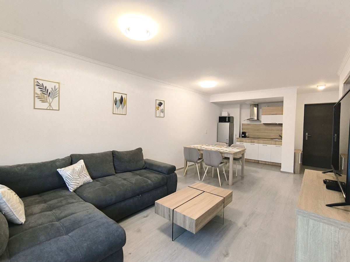 **** (4* szálláshely) Este apartamento tranquilo, tranquilo, nuevo y muy moderno y elegante, ubicado en el centro, tiene capacidad para 2-3 personas. A pocos minutos de tiendas, panaderías, correos, cafeterías y restaurantes. 150 m - Calle peatonal 550 m - Héviz Thermal Lake El apartotel tiene 1 dormitorio y una sala de estar cocina con TV y un sofá Hay aparcamiento gratuito en la parte delantera del edificio. Está tan cerca del lago que no tendrás que utilizar tu coche en absoluto :) El apartamento no es apto para menores de 2 años.